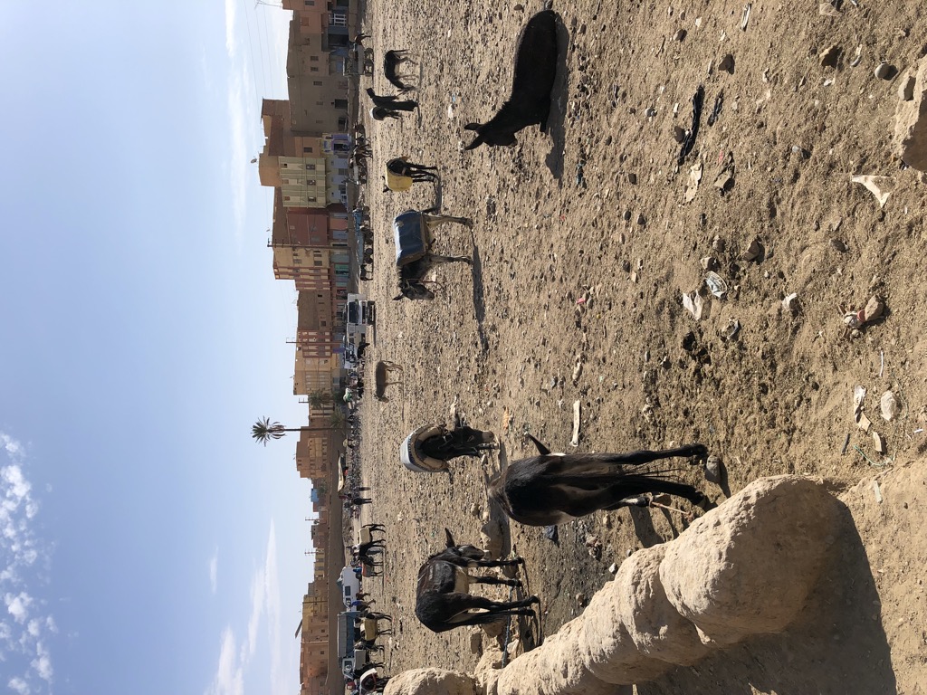 Sonntag treffen wir uns mit Christian (dem Franzosen) und fahren zusammen nach Rissani auf den großen Markt. Das ist absolut der Wahnsinn, gefühlt ist die ganze Stadt ein Marktplatz. An der einen Ecke gibt es den großen Schafmarkt, dann einen Dattelmarkt und jede menge Gemüse-, Obst-, Bekleidungsstände aber auch Fisch und Fleisch, natürlich wieder Tücher, Teppiche und Schuhe zu kaufen.