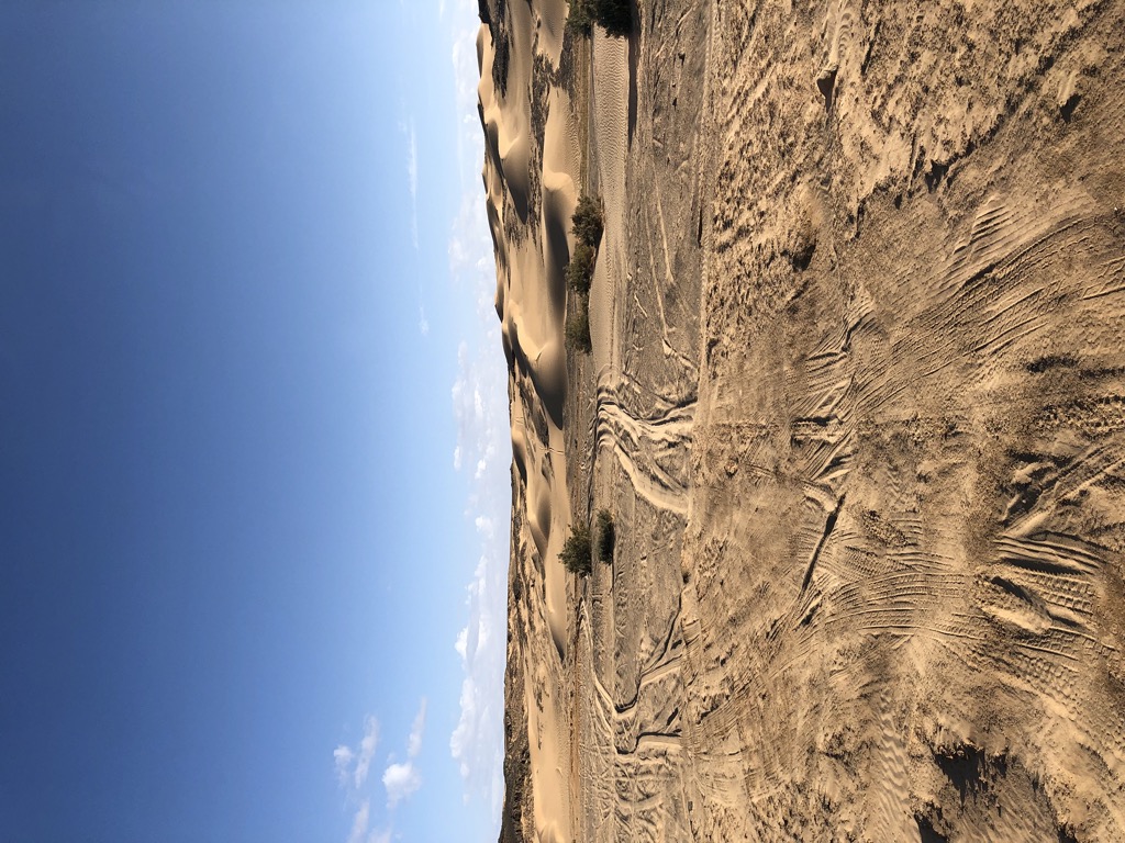 Wir fahren in die Wüste. Die meisten denken ja Wüste besteht aus Sand und vielleicht mal einer Oase, weit gefehlt. Die Landschaft und ihr Bild wechseln sich ständig ab. In einem Moment befindet man sich auf sandigem Gebiet im nächsten hat es wieder mehr Steine oder es sieht aus als würde man über einen ausgetrockneten Salzsee fahren. Es gibt auch immer wieder Büsche und kleine Bäume, welche furchtbar lange Stacheln haben.