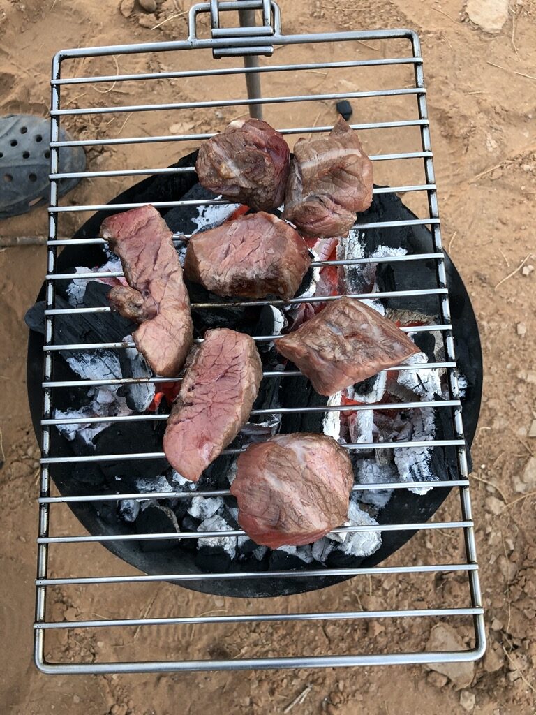 Wir fahren nur noch ein kleines Stück und finden dann einen super schönen Übernachtungsplatz. Natürlich haben wir auch wieder Holz gesammelt, so dass wir schon um fünfzehn Uhr ein kleines Lagerfeuer hatten. Die Männer haben es standesgemäß ohne Feuerzeug und Streichhölzer entfacht. Später haben wir noch Zuwachs bekommen, noch ein Toyota mit Schweitzer Kennzeichen. Er ist Schweitzer, sie kommt aus dem Senegal und dann ist da noch die sieben Monate alte Tochter. Verrückt, da trifft man sich mitten in der Wüste. Wir verbringen einen schönen Abend am Lagerfeuer.