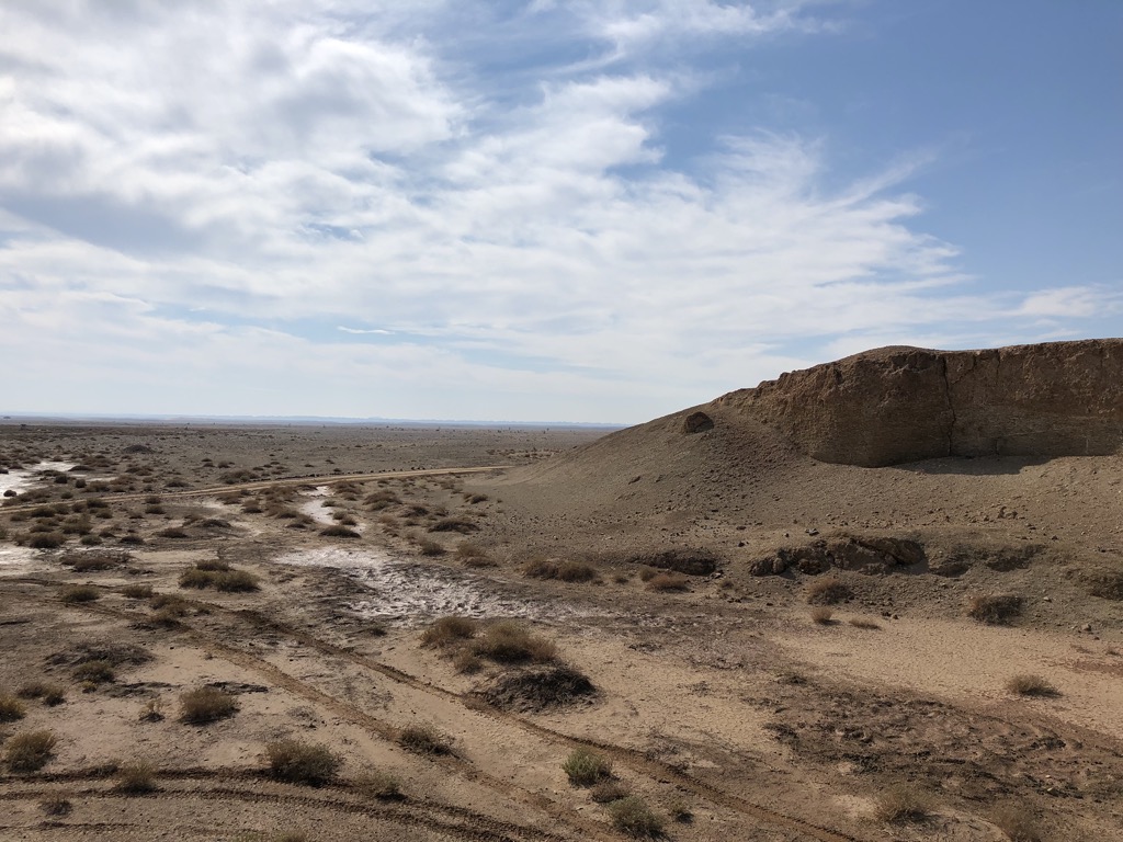 Am nächsten Tag möchte ich unbedingt auch mal Dünen fahren. Leider gibt es nicht mehr ganz so viele auf unserer Route, aber ist okay. Dafür hab ich eine, für mich, anspruchsvolle enge Stein Stelle zu bewältigen. Das klappt auch ganz gut. Dann wird es nochmal knifflig als wir in die Nähe des anderen Sees kommen. Wir haben alle keine Lust mehr auf das Geholper der Steinpiste und fahren am Rande des Sees. Nur ganz knapp schaff ich es den Moggel über eine ziemlich matschige Stelle zu fahren ohne dass wir absaufen. Siggi sitzt neben dran und gibt die ganze Zeit Kommando Gas, Gas, aber ich hab schon bis aufs Blech durch gedrückt, wir werden immer langsamer. Ich schick ein Stoßgebet gen Himmel, bitte nicht stecken bleiben!!! Puuh geschafft, wir sind durch.