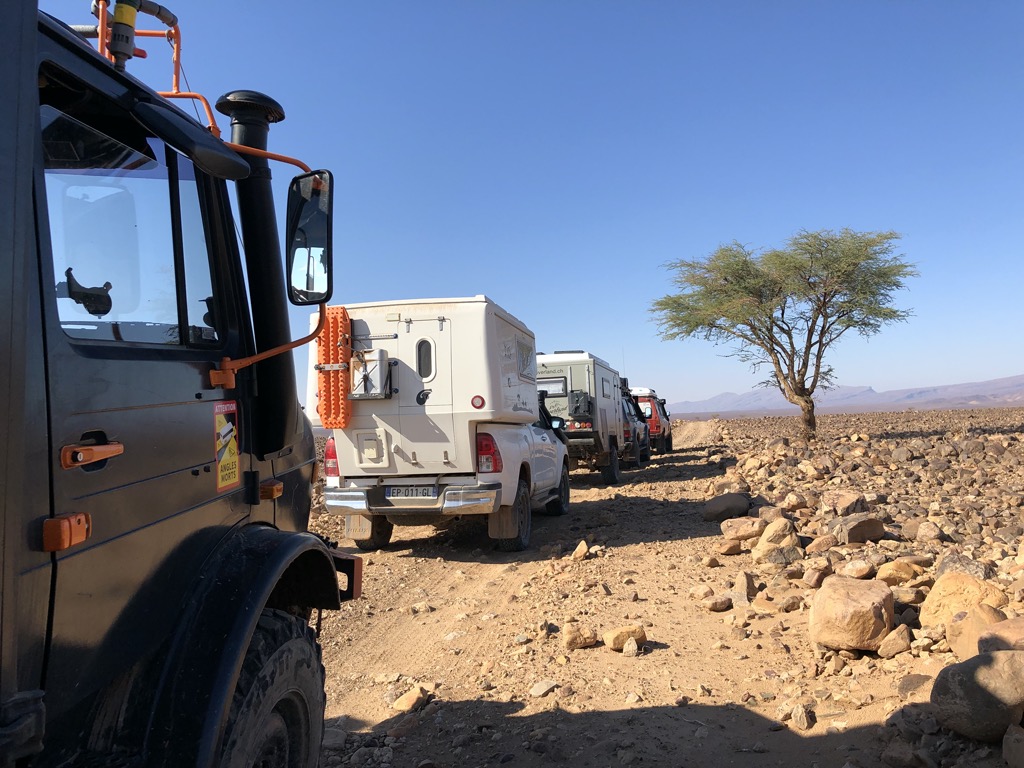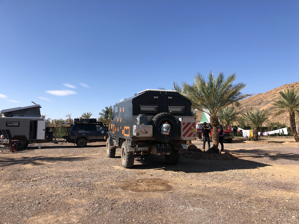 Wenn wir alleine wären, hätten wir schon längst Feierabend gemacht. Aber der Gruppenzwang nötigt uns mitzufahren bis nach Foum Zguid und gehen da zusammen auf ein Camp. Am Abend sind wir so fertig, das wir uns in den Moggel zurückziehen. Am nächsten Tag verabschieden wir uns und fahren alleine weiter.