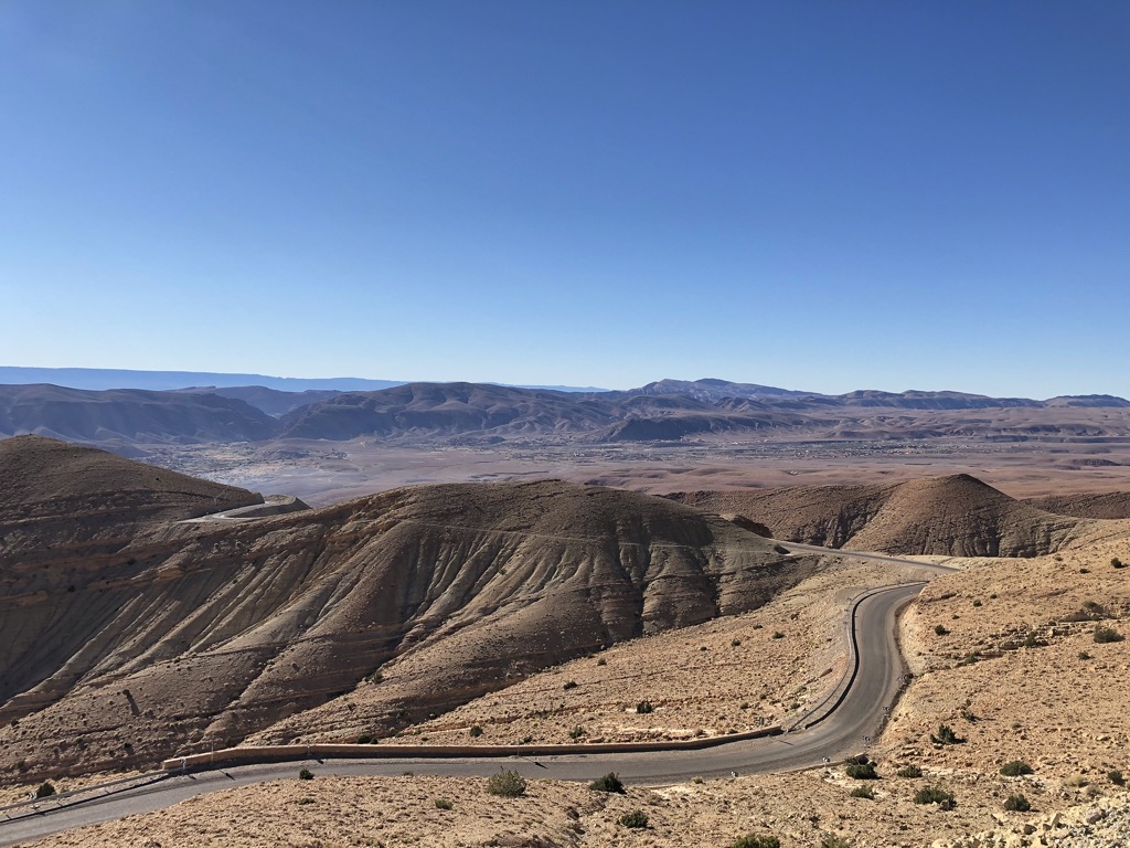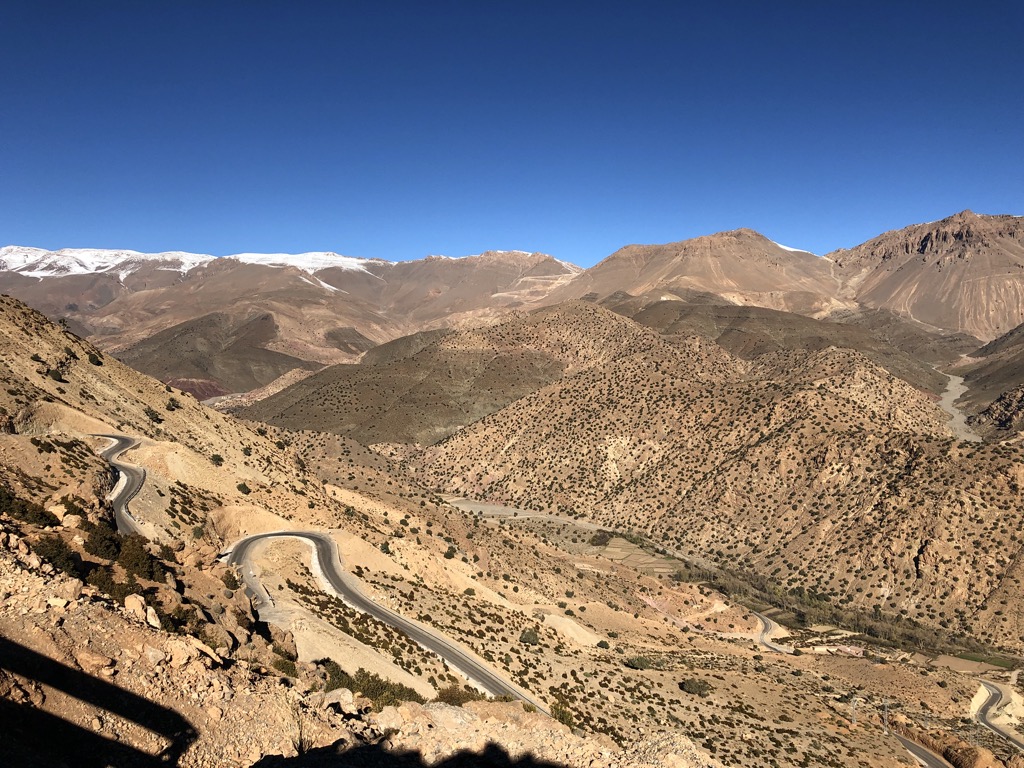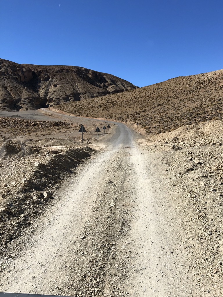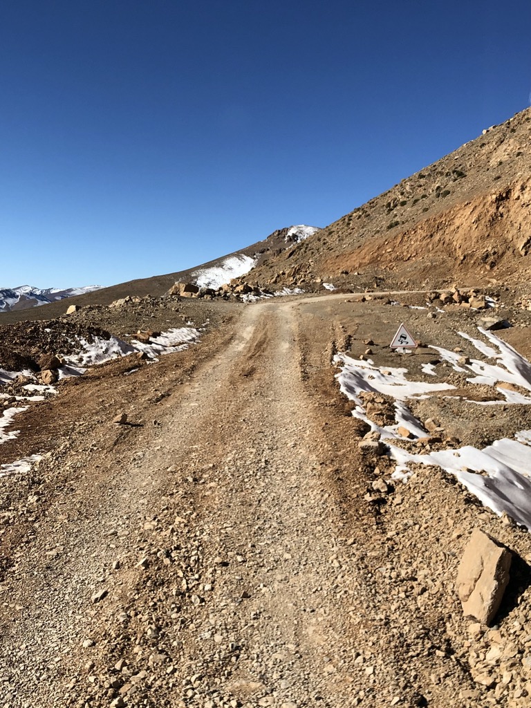 Von hier aus starten wir die 4 Pässe Tour über den Hohen Atlas. Geplant war, dass wir das an zwei Tagen machen, aber irgendwie ist der Moggel so gut gelaufen, dass wir gar nicht groß auf die Idee kamen eine Übernachtung an zu steuern. Der erste Pass war recht schnell erreicht auf 2400m mit teilweise noch Blick auf das Tal der Rosen.