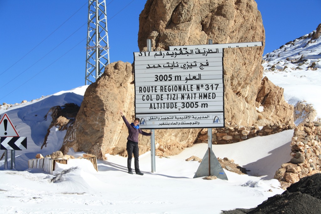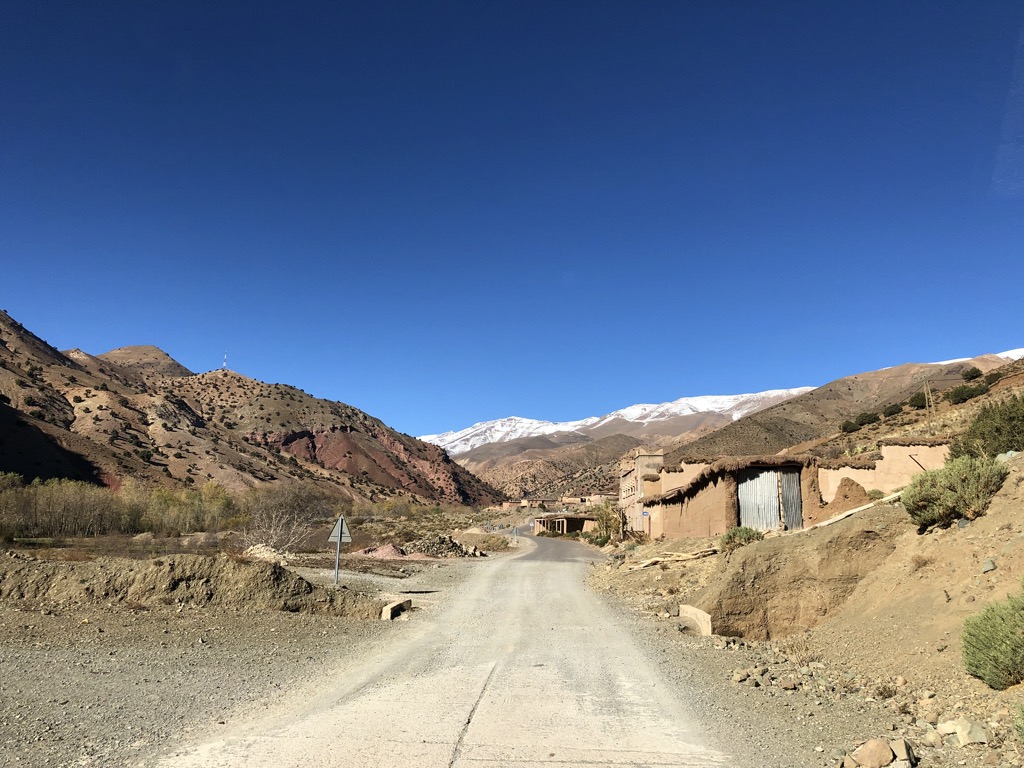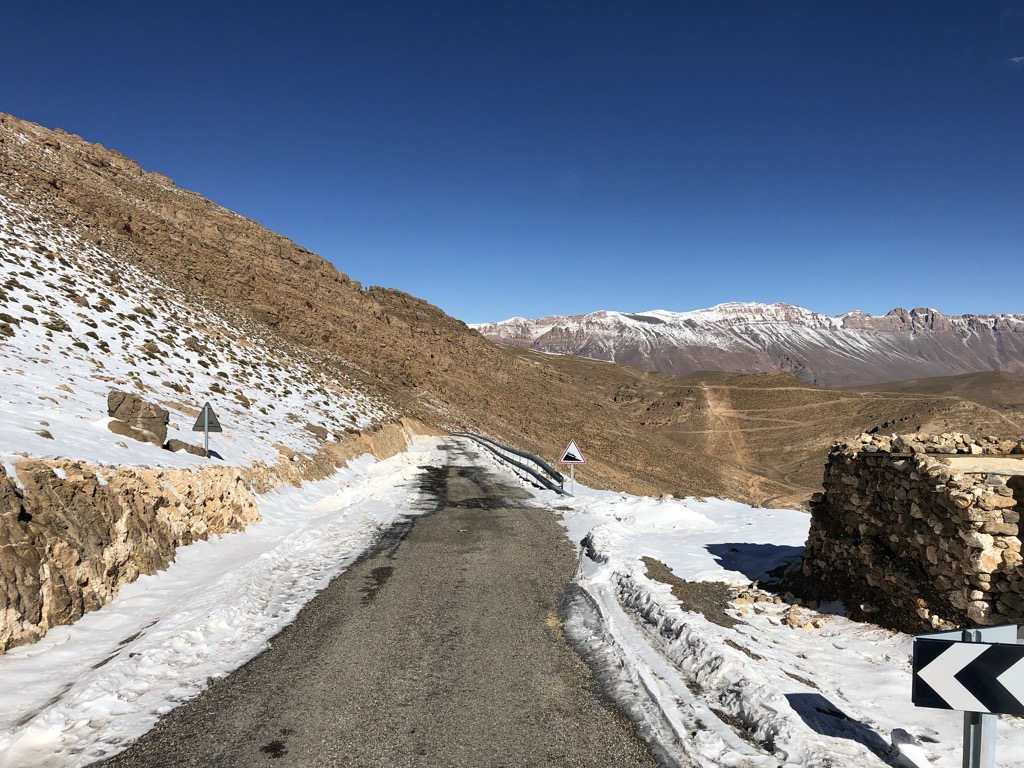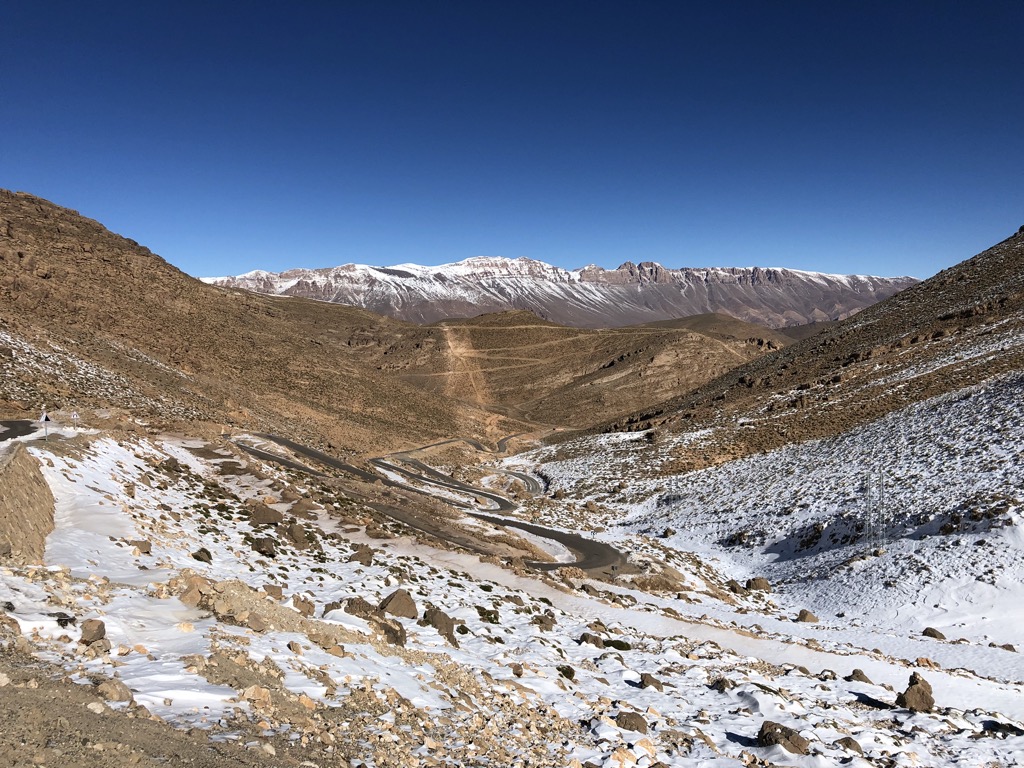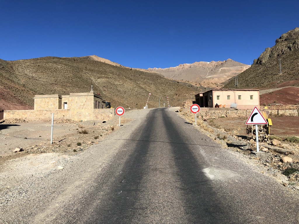 Von hier aus starten wir die 4 Pässe Tour über den Hohen Atlas. Geplant war, dass wir das an zwei Tagen machen, aber irgendwie ist der Moggel so gut gelaufen, dass wir gar nicht groß auf die Idee kamen eine Übernachtung an zu steuern. Der erste Pass war recht schnell erreicht auf 2400m mit teilweise noch Blick auf das Tal der Rosen.