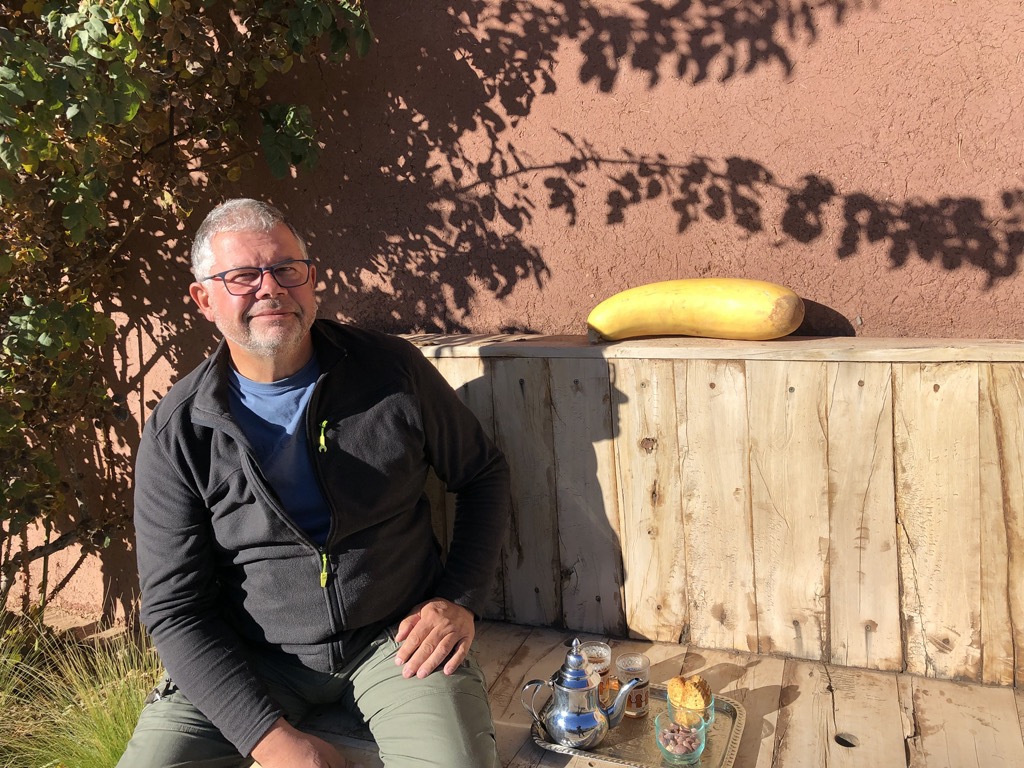 Wir fahren ins Bougumez Tal und schlafen dort auf dem Hof einer Pension. Diese gehört einer Schweizerin und ihrem Marokkanischen Mann. Leider sind auch die beiden, wie schon viele Besitzer anderer Camps, nicht direkt vor Ort, sondern haben Angestellte. Wir bekommen einen Tee, Kekse und Nüsse zur Begrüßung, wir genießen alles zusammen in der Sonne.