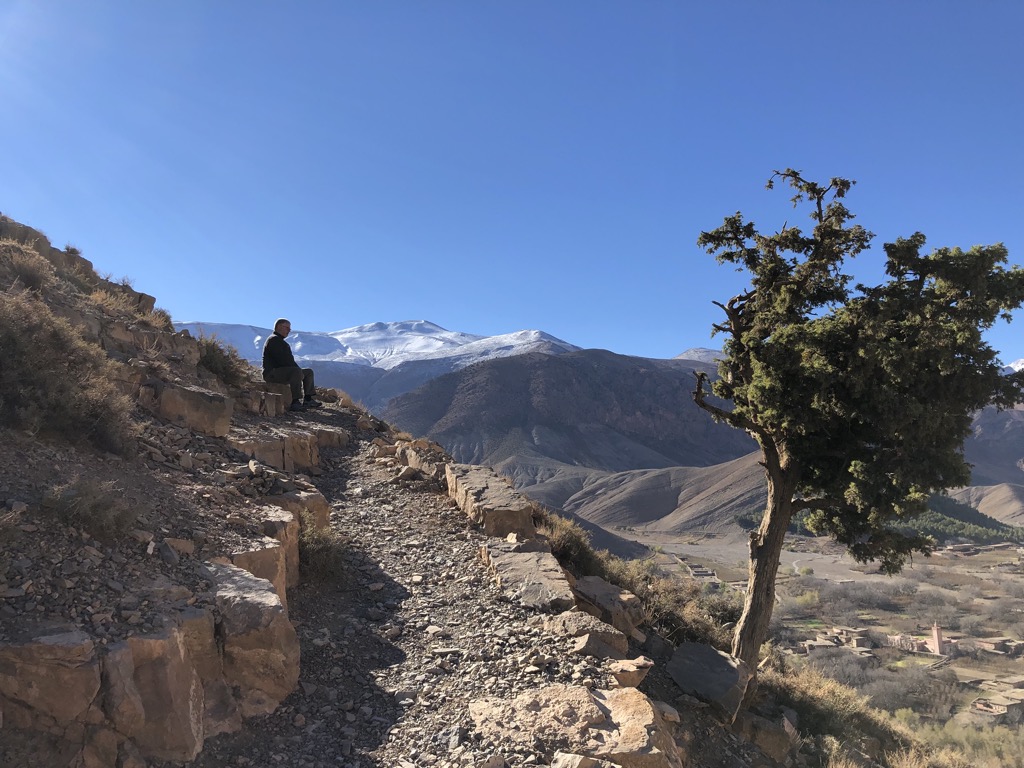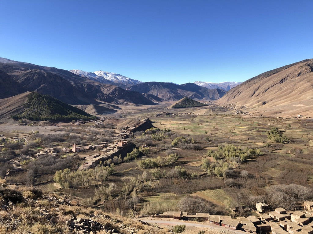 Dieses Tal mit seinen super schönen Bergen, ist wohl sehr beliebt um mehrtägige Wanderungen zu machen. Wir unternehmen am nächsten Tag eine mini kleine Tour auf einen der 2. Kegelförmigen Berge im Tal. Auf denen steht je ein Gemeinschafts-Speicherhaus, welches im arabischen Agadir genannt wird, dort haben die Menschen früher ihre Vorräte eingelagert. Die Aussicht von hier oben ist einfach ein Traum!