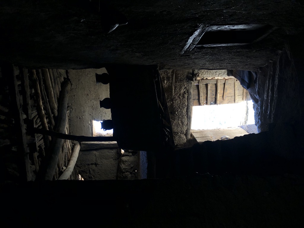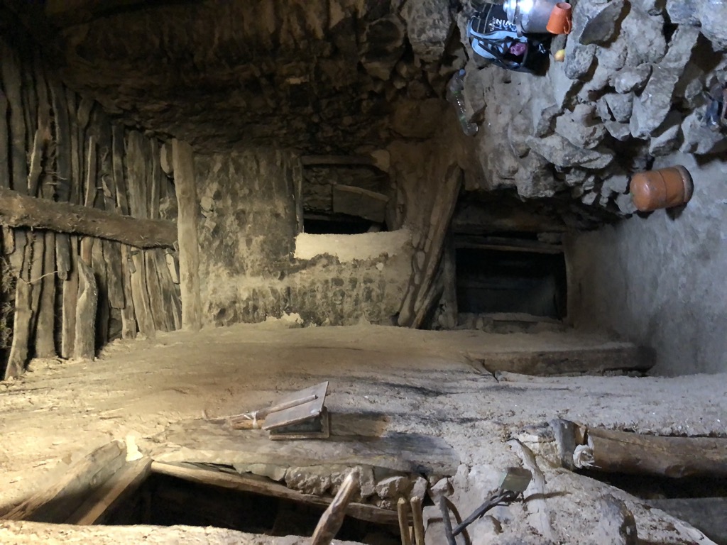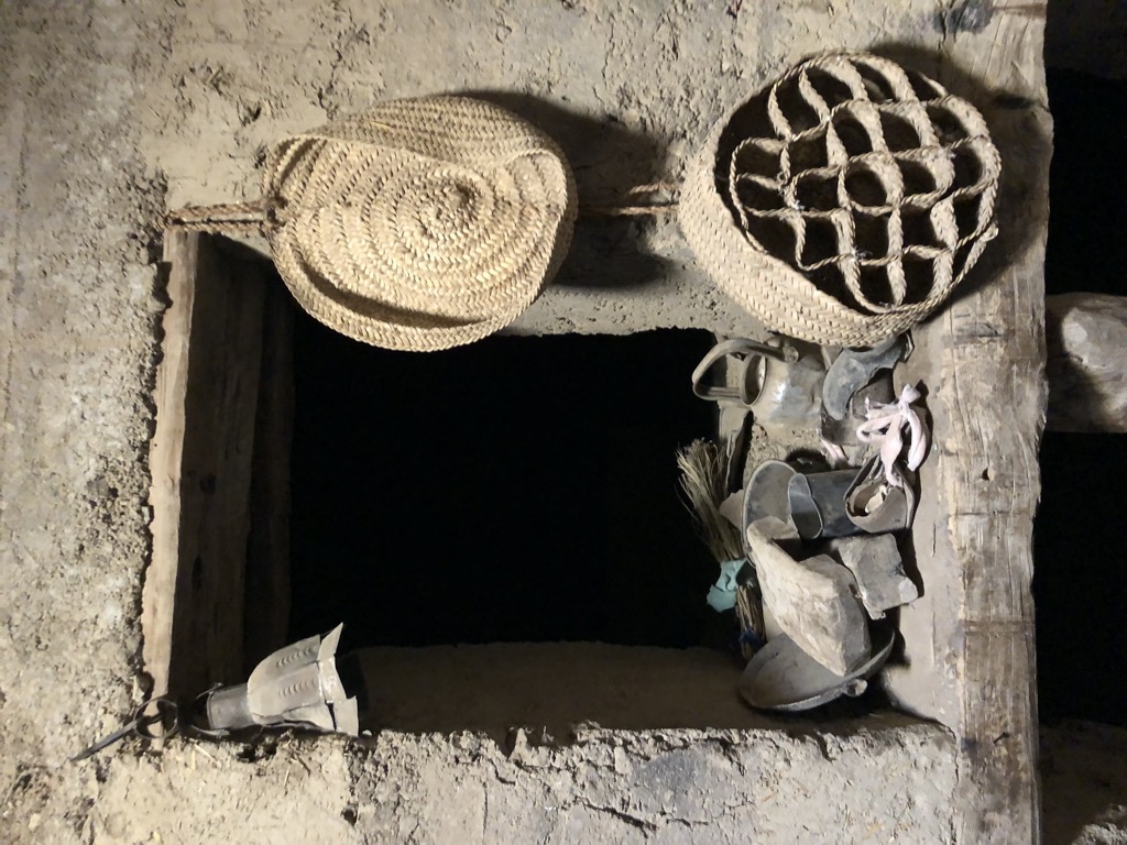 Wir haben sogar das Glück, dass gerade drei Männer im Agadir sind und renovieren. Ganz überraschend werden wir eingeladen für eine Besichtigung rein zu kommen und uns um zu sehen. Hier stehen viele alte Gegenstände wie z.B. ein alter Mühlstein, Teekessel und verschiedene Körbe und Tongefäße zur Aufbewahrung der Lebensmittel. Es gibt viele kleine Kammern, die tief nach hinten in das Gebäude gehen. Ich passe da gerade so rein, Siggi hätte da echt Probleme rein und wieder raus zu kommen.