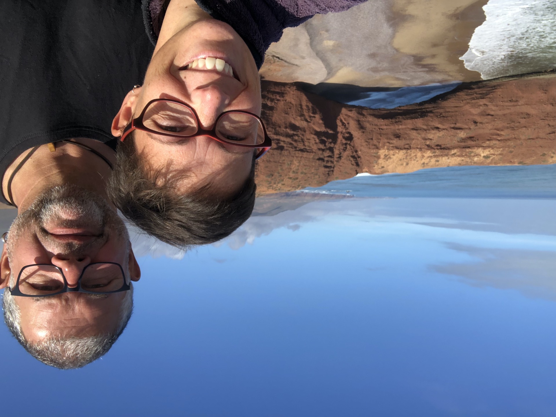 Vom Camp aus sind wir nach Sidi Ifni gefahren, dort gibt es nördlich an der Küste so Felsenbögen, die wollten wir uns anschauen. Hatten einen schönen Übernachtungsplatz direkt auf einer Klippe mit der Aussicht auf einen Bogen.