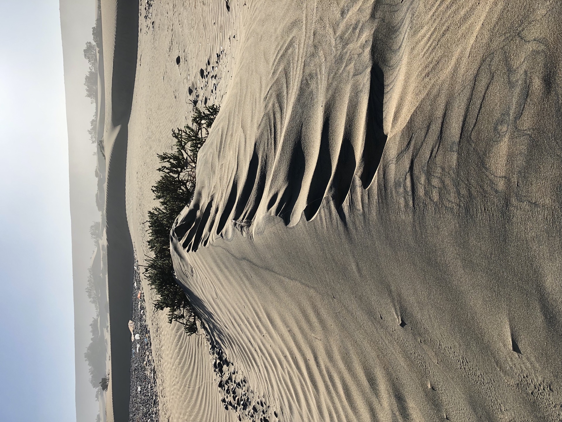 Das ist ein ziemlich breiter aber noch längerer Strand. Ich weiß nicht, aber 50km bestimmt. Es gibt dort auch eine offizielle Piste die über den Strand verläuft. Wir haben uns erst ein bisschen schwer getan den Weg auf den Strand zu finden. Es gibt nur wenige Stellen an denen es möglich ist über die teils 40 m Hohe Klippe runter zum Strand zu fahren. Den ersten Versuch haben wir abgebrochen, da der Weg für uns viel zu eng war. Doch der zweite Versuch hat dann ganz gut geklappt und so konnten wir 2 Tage ganz für uns alleine am Strand stehen.