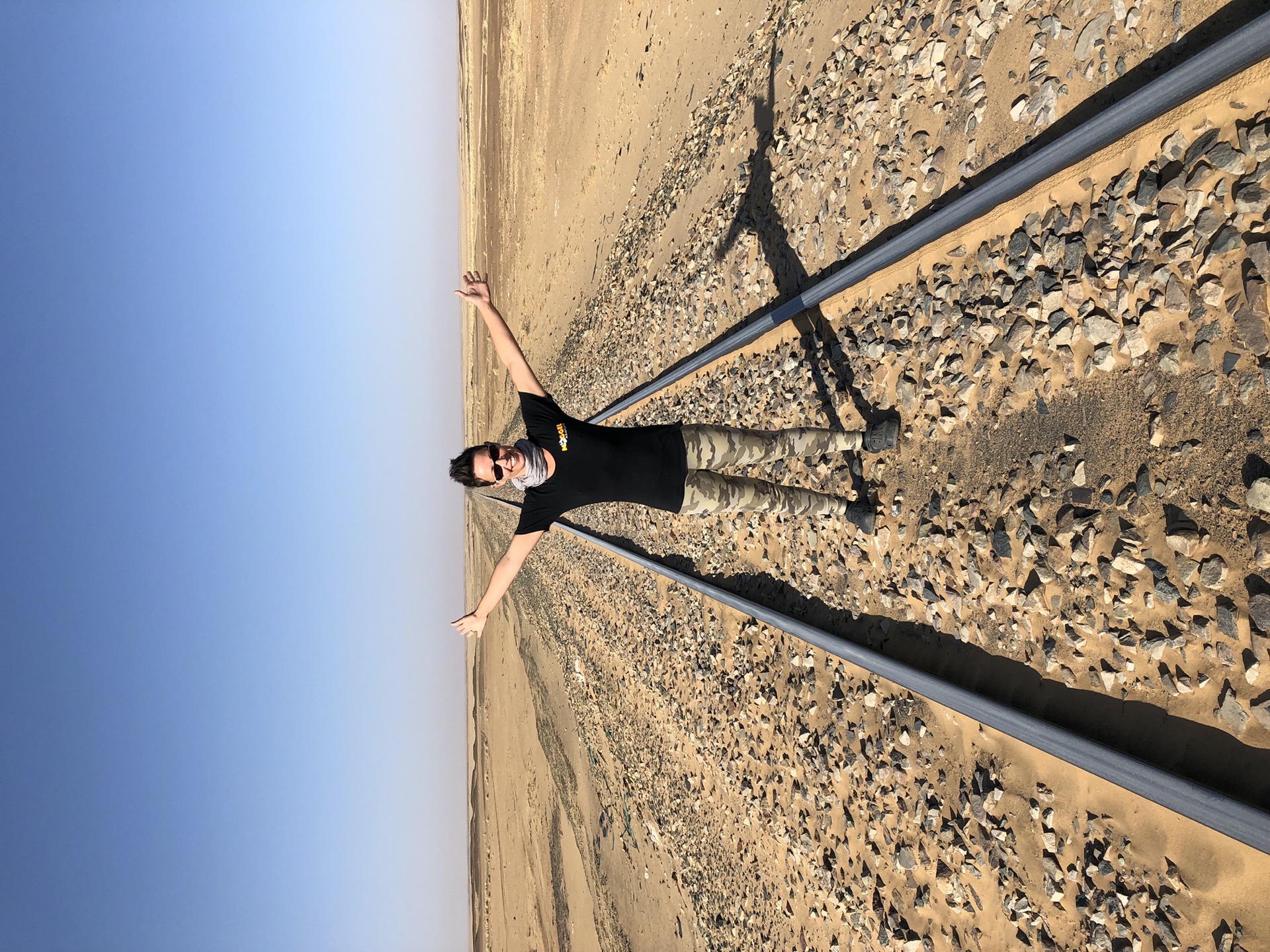 Die Nacht ist mega ruhig und so können wir am zweiten Tag ganz entspannt los fahren. Wir sitzen kaum fahrbereit im Moggel, da fährt auch schon ein PickUp an den Bahnschienen entlang. Wir grüßen freundlich und fahren los. Dann geht es immer der Piste nach Richtung Osten. Teilweise ist es schön sandig und da Siggi wieder den Luftdruck gesenkt hat (1,6 Bar) fährt es sich völlig entspannt. Es hat nur leider ziemlich viel Wellblech und das ist alles andere als spaßig! Wir werden mächtig durchgerüttelt. Unterwegs kommen wir an einem Autofrack und einigen Skelettierten Dromedare vorbei. Wir passieren auch zwei verlassene Ansammlungen von Hütten, treffen aber auch auf eine ziemlich große Ziegenherde und wirklich unzählige Dromedare. Teilweise mit Menschen dabei, manchmal auch, ohne dass wir Menschen sehen.