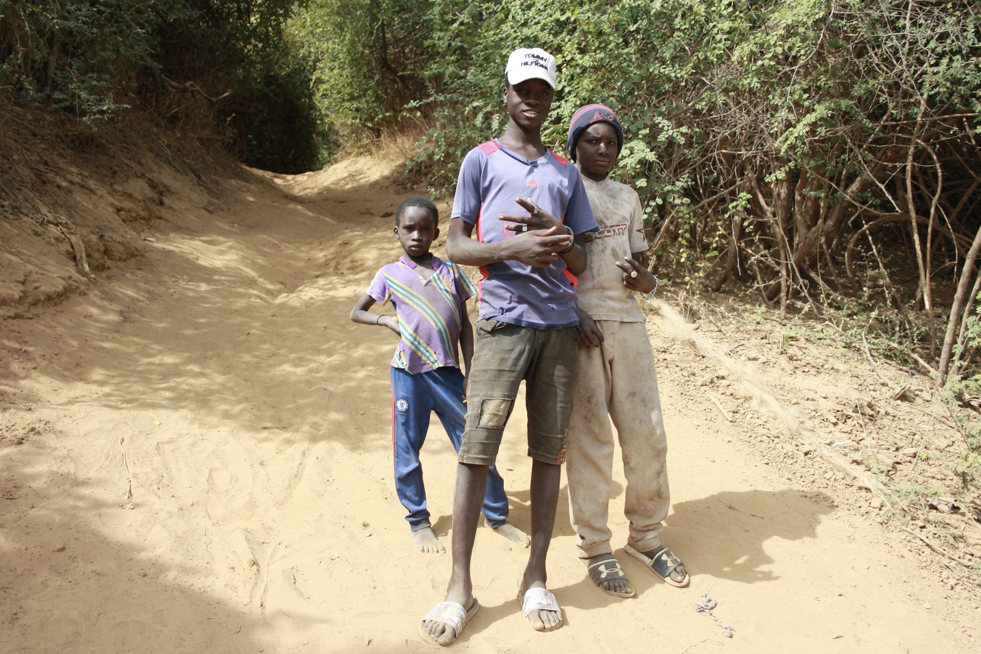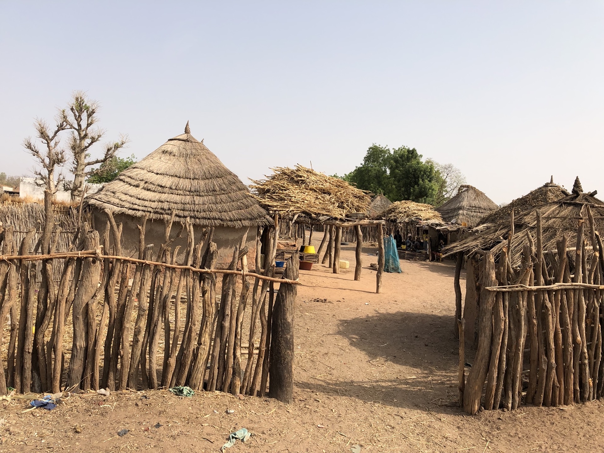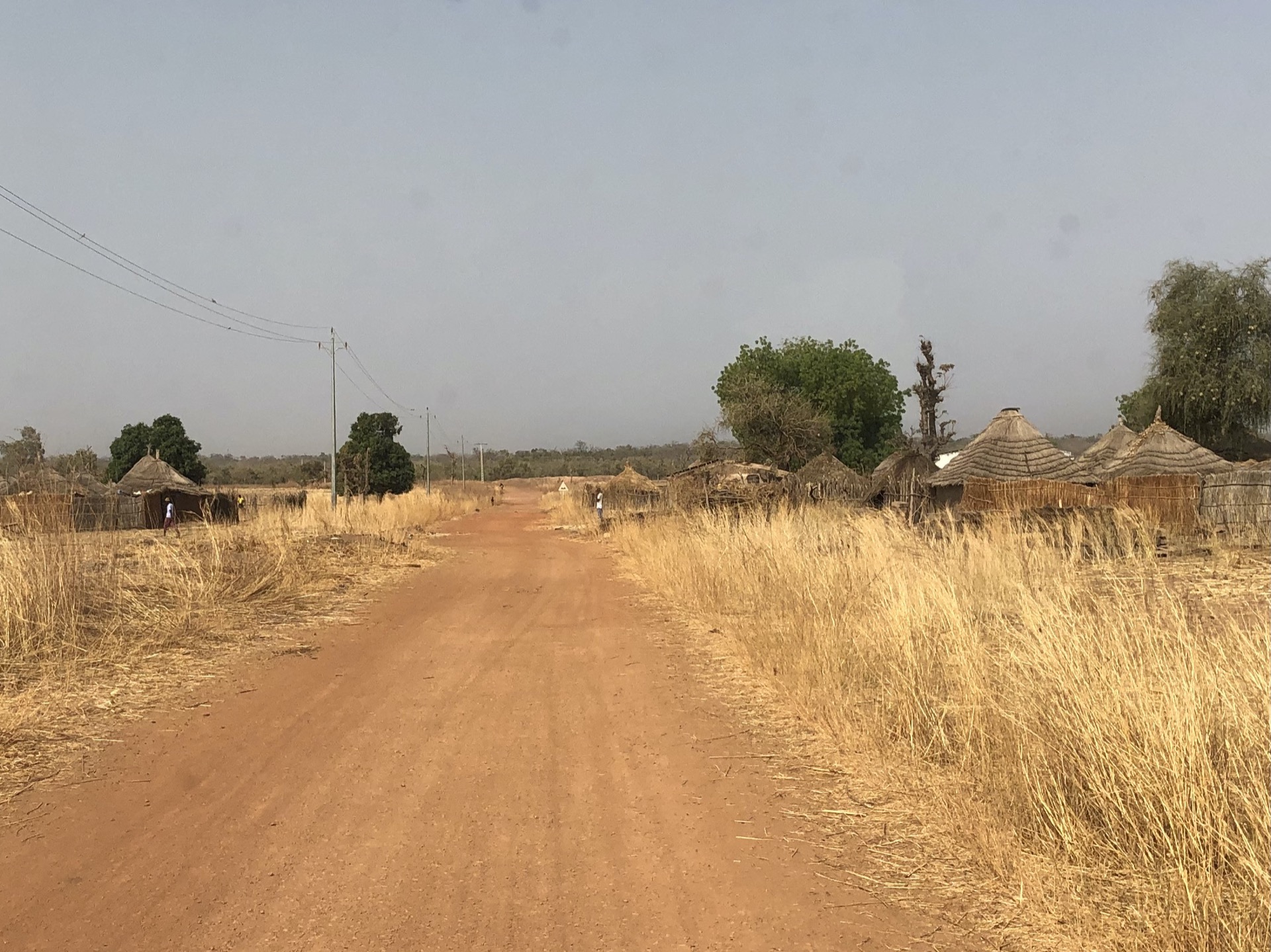 So stehen bei den Häusern und Hütten oft mehrere Mangobäume und darunter befindet sich eine Sitz- oder Liegegelegenheit. Das mit dem Schatten ist hier echt wichtig. Im Gegensatz zu Dakar sind es jetzt 20 Grad mehr, was das Thermometer anzeigt. Wir haben über 42 Grad (max. waren 45,1) und nachts sinkt die Temperatur erst gegen sieben Uhr auf 25 Grad und gegen halb neun steigt sie schon wieder deutlich an. Zwei Nächste verbringen wir jeweils in der Nähe von Dörfern. Es kommen wie immer Menschen vorbei und fragen wohin, woher und auf Nachfrage, ob wir eine Nacht stehen bleiben können und schlafen gibt es immer die Antwort, kein Problem. So gefällt uns das! Das letzte Dorf vor der Grenze zu Guinea erreichen wir nach 4 Tagen. Wir stellen uns an einen Baum um wenigsten ein bisschen Schatten zu bekommen. Die Nacht ist bis auf eine kleine Störung durch eine Handvoll Esel, die sich am Moggel schrubbern und laut Iiiaaaa rufen ruhig.