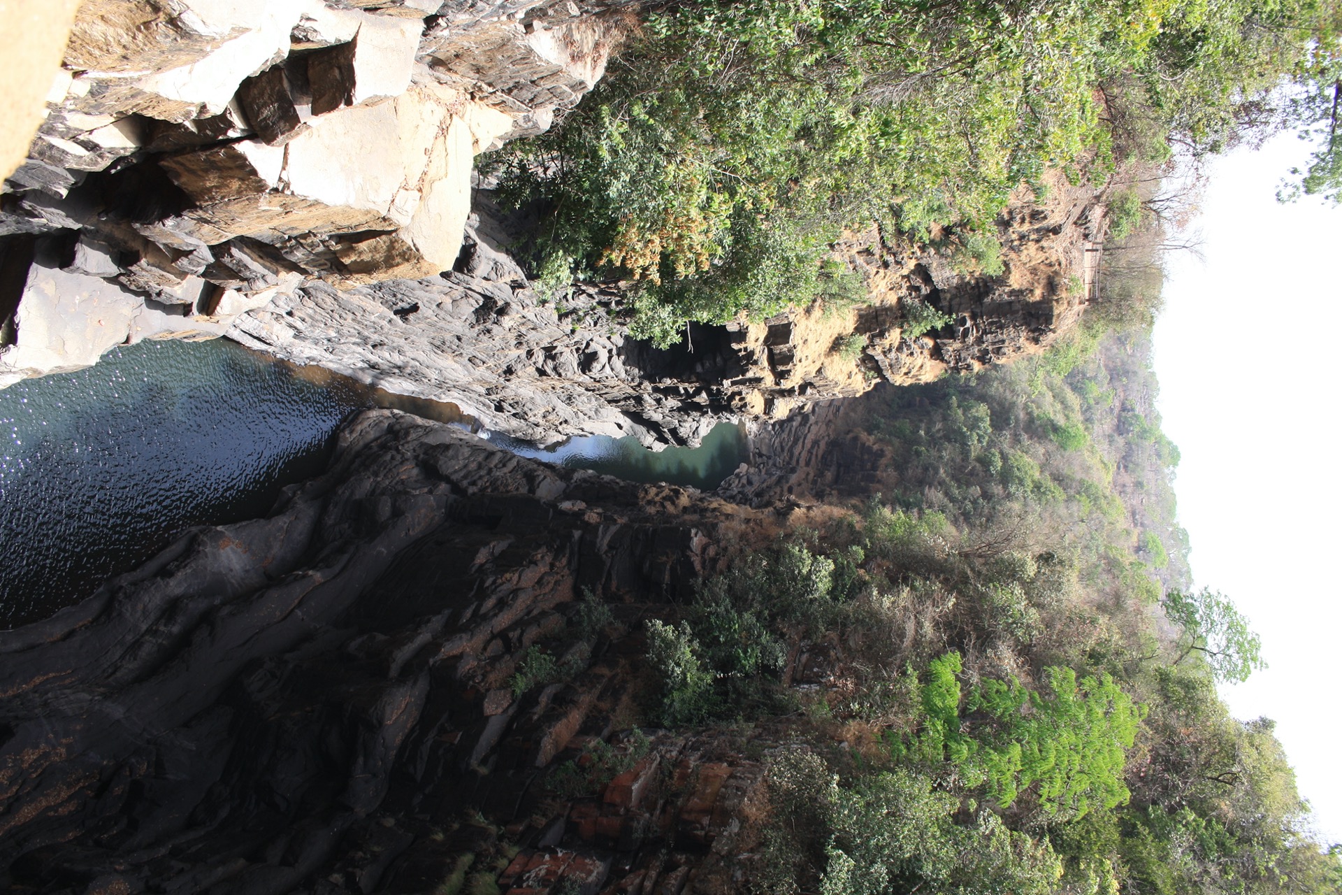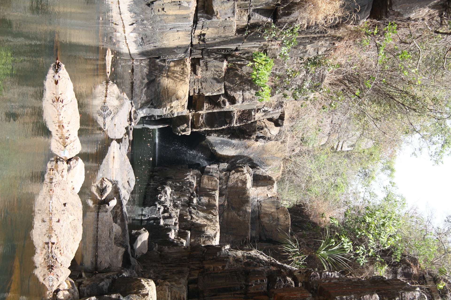 Wir parken den Moggel und machen wenigsten ein, zwei Bilder vom Fluß, der den Wasserfall speist. Der Platz wäre ein absoluter Traum, wir könnten mit dem Moggel auf den Steinplatten stehen, im sauberen Wasser die Wäsche waschen. Grrrrr, so ein Schei….. Schweren Herzens fahren wir weiter.