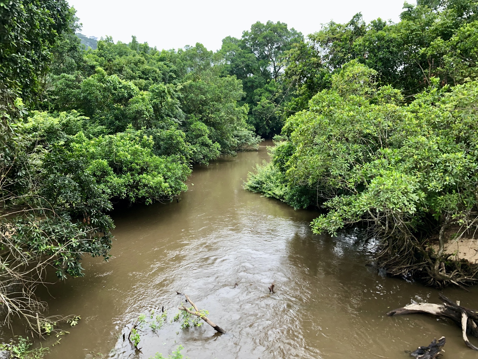 Weiter südlich fallen wir das erste Mal korrupten Polizisten in die Hände. Insgesamt haben wir bei 3 Kontrollen umgerechnet 16,-€ Strafe gezahlt – runtergehandelt. Zweimal wegen nicht angeschnallt sein, wir fahren die letzten 4 Monate unangeschnallt und sind unzählige Male von der Polizei kontrolliert worden. Naja so lange es bei den Preisen bleibt, kommen wir damit klar. Hier im Süden fahren wir durch einige Gebiete mit Regenwald, teilweise recht dicht, manchmal aber auch zum Teil mit Plantagen dazwischen.