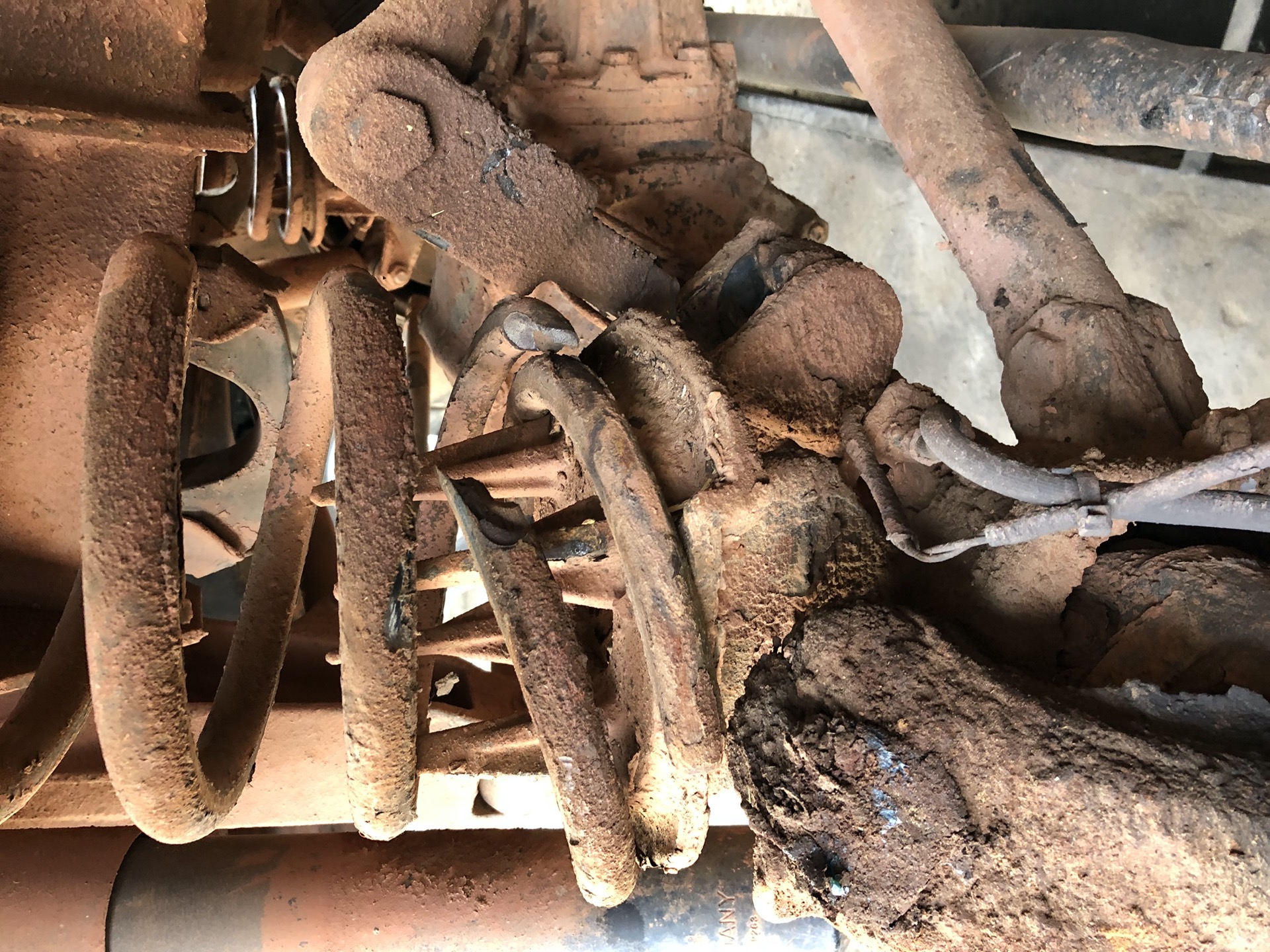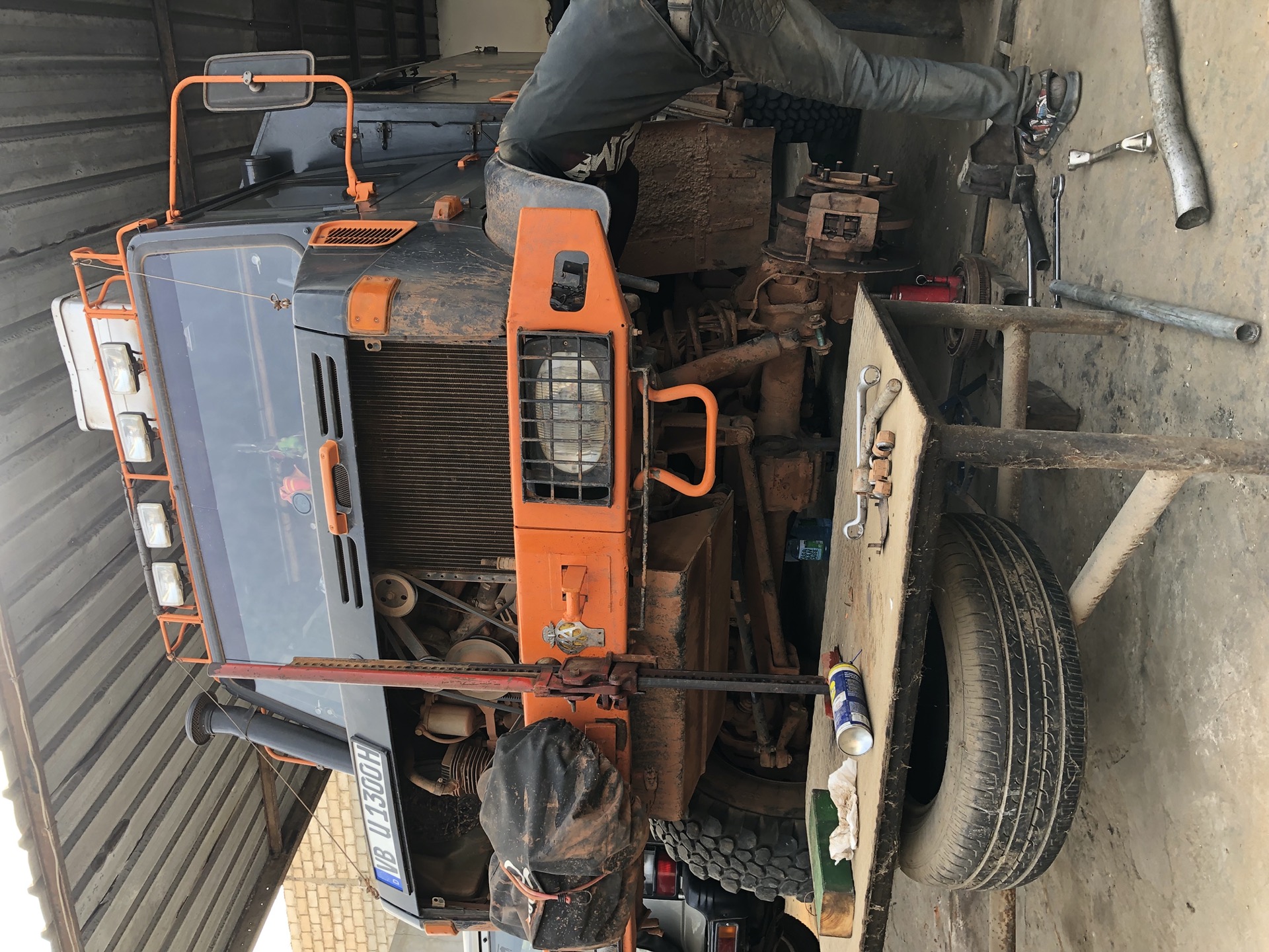 Eine Arbeitswoche verbringen wir bei Marc in der Werkstatt. Die Bremsbelege vorne müssen getauscht werden und beim Radvorgelege füllt Siggi wieder Öl nach. Beim ausbauen der Spiralfeder stellen die Jungs fest das auch die Stützstrebe dazu gebrochen ist.