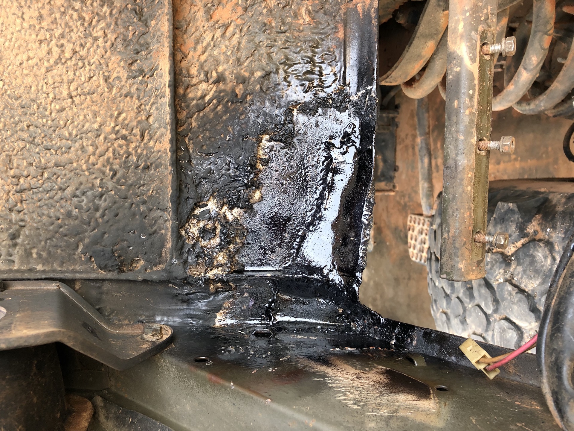Dann hatten wir schon in Deutschland ein kleines Loch im Radkasten vorne rechts. Das haben wir uns schweissen lassen, damit wir dann im Juli in Deutschland keine Probleme mit dem TüV bekommen.