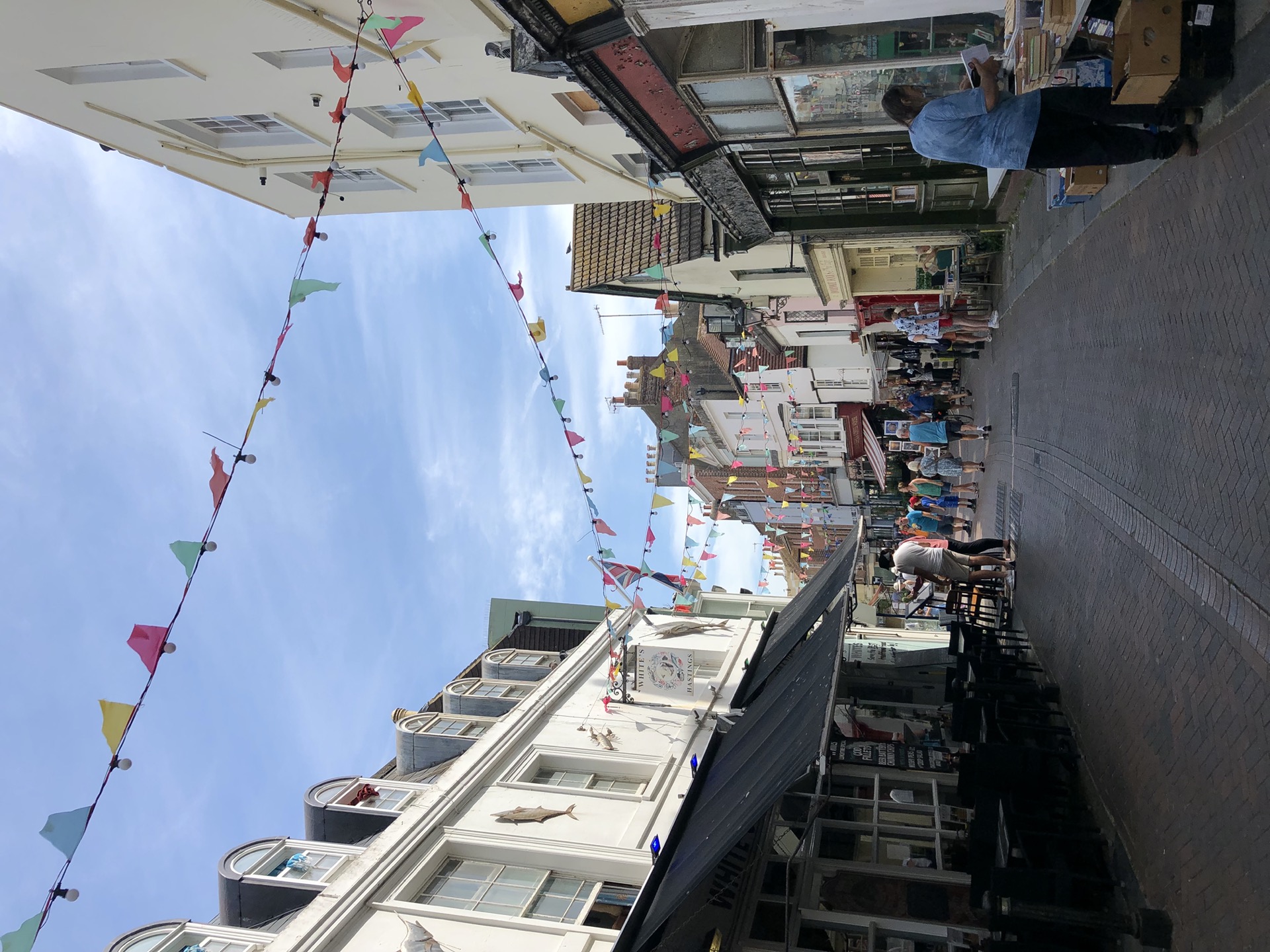Dann gab es die erste Tüte „Fish and Chips“ (Großbritanniens „National“ Gericht). Viele Pommes und ein recht großer Fisch, das war für uns beide ausreichend. Danach sind wir noch ein wenig durch die kleinen Gassen gelaufen. Es ist mächtig viel Betrieb in den Strassen, auch in den Cafés und Pubs ist richtig was los.