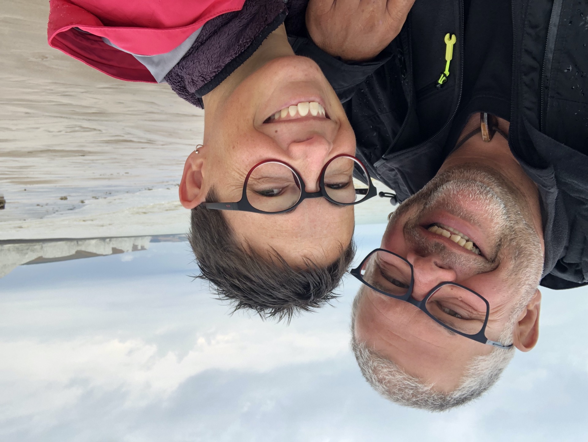Am nächsten Tag stehen wir zeitig auf, um uns diese aus der Nähe an zu schauen. Leider regnet es und es ist ordentlich dunstig! Trotzdem, hilft ja nix, fahren wir die paar Kilometer von unserem Stellplatz an einen großen Parkplatz. Von dort aus kann man bei Ebbe (daher auch das frühe Aufstehen) an den „Strand“ und sich die Seven Sisters von unten anschauen. Als wir dann am Wasser sind hat es zu mindestens aufgehört zu regnen. Jetzt fisselt es nur noch ein wenig.