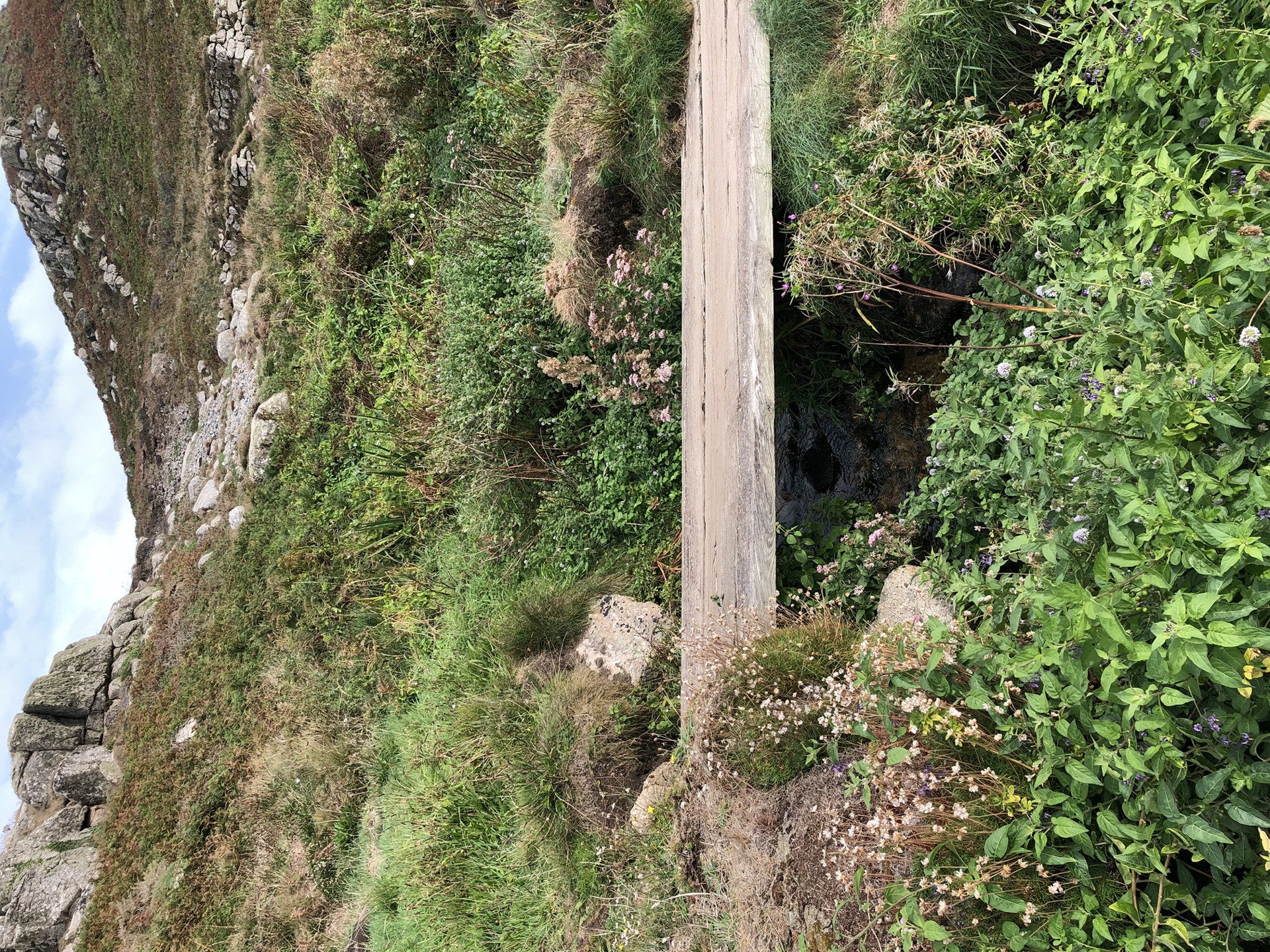 Am Abend vorher hab ich in der App gesehen, dass ich mir bei der Gelegenheit das Cape Cornwall nicht entgehen lassen kann. Bei meiner Planung hab ich es aber versäumt die extra Tour mit in meinen Kilometer- und somit Zeitplan einzubeziehen. Das ist mir dann wettertechnisch leider zum Verhängnis geworden! Jetzt aber von vorne. Das Wetter war beim Aufwachen durchwachsen und daher konnte ich mich nicht so recht zum Laufen entschliessen. Deshalb sind wir erstmal ein ganzes Stück gefahren. Das Wetter wurde dann von Stunde zu Stunde besser und ich bekam doch Lust zu wandern. Also haben wir noch zusammen gegessen und dann gings mit dem Rucksack voller Proviant, Trinken, Kamera und Regenjacke los. Zuerst bin ich wie gesagt ans Cape Cornwall, das heisst erst runter und dann hoch.
