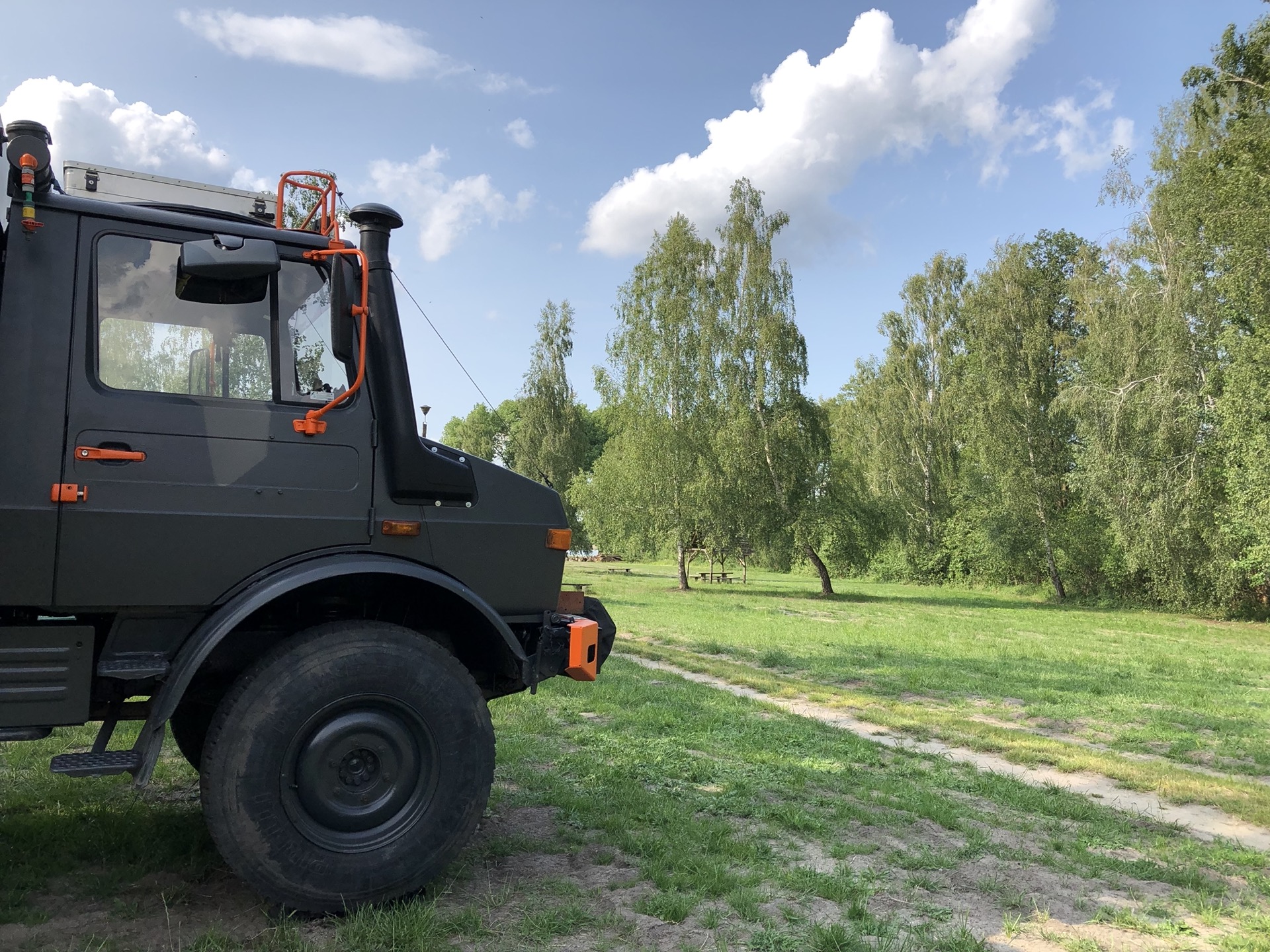Unsere Stellplätze suchen wir uns immer spontan aus und hatten bisher auch ein gutes Händchen dafür. So standen wir an einem Kloster, auf einem kleinen Campingplatz mit See und in Augustow in der Nähe des Hafens. Abends konnten wir uns nach den vielen Stunden fahren immer nochmal die Beine vertreten!