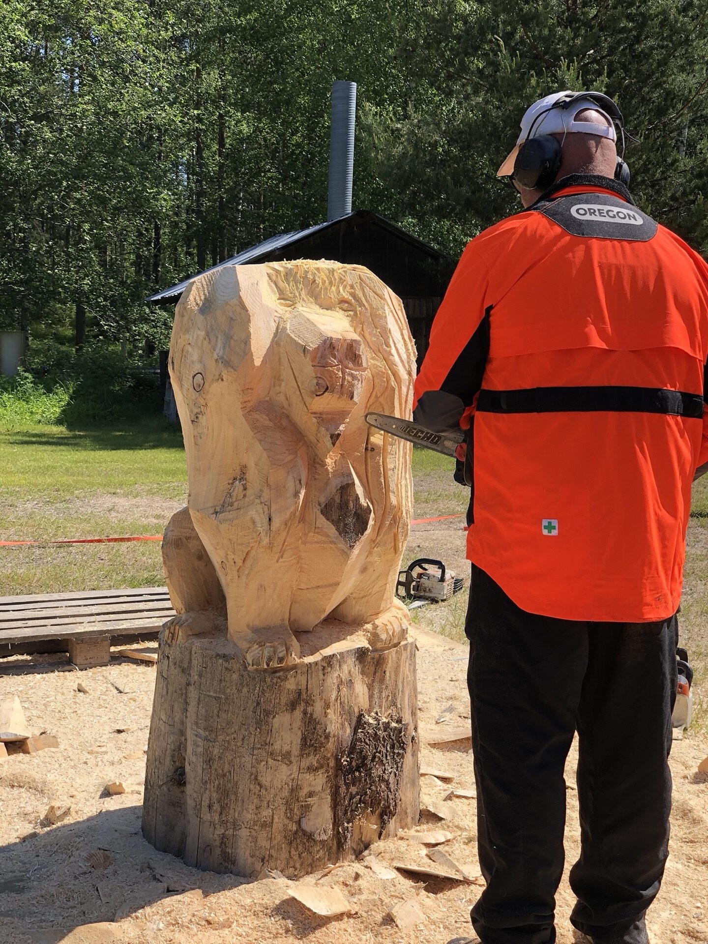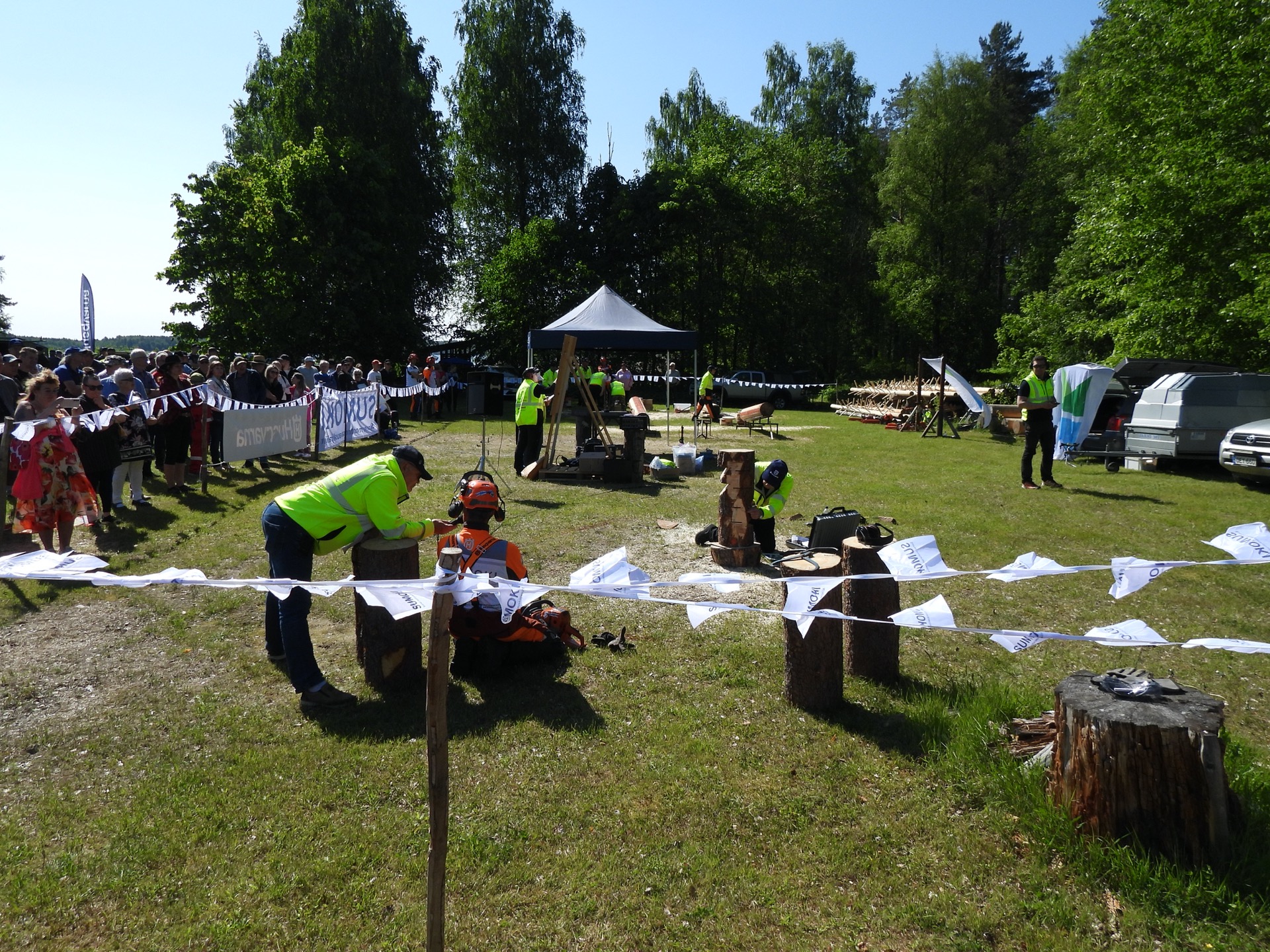 Durch Zufall haben wir von der Kettensägenmeisterschaft in Lusto erfahren und uns gedacht, dass dies vielleicht interessant sei. Nun ja, es sind andere Disziplinen, als bei der Weltmeisterschaft, das zumindest laut Siggi und da das alles nur auf finnisch war, haben wir nicht so viel verstanden. Schauen ging aber.