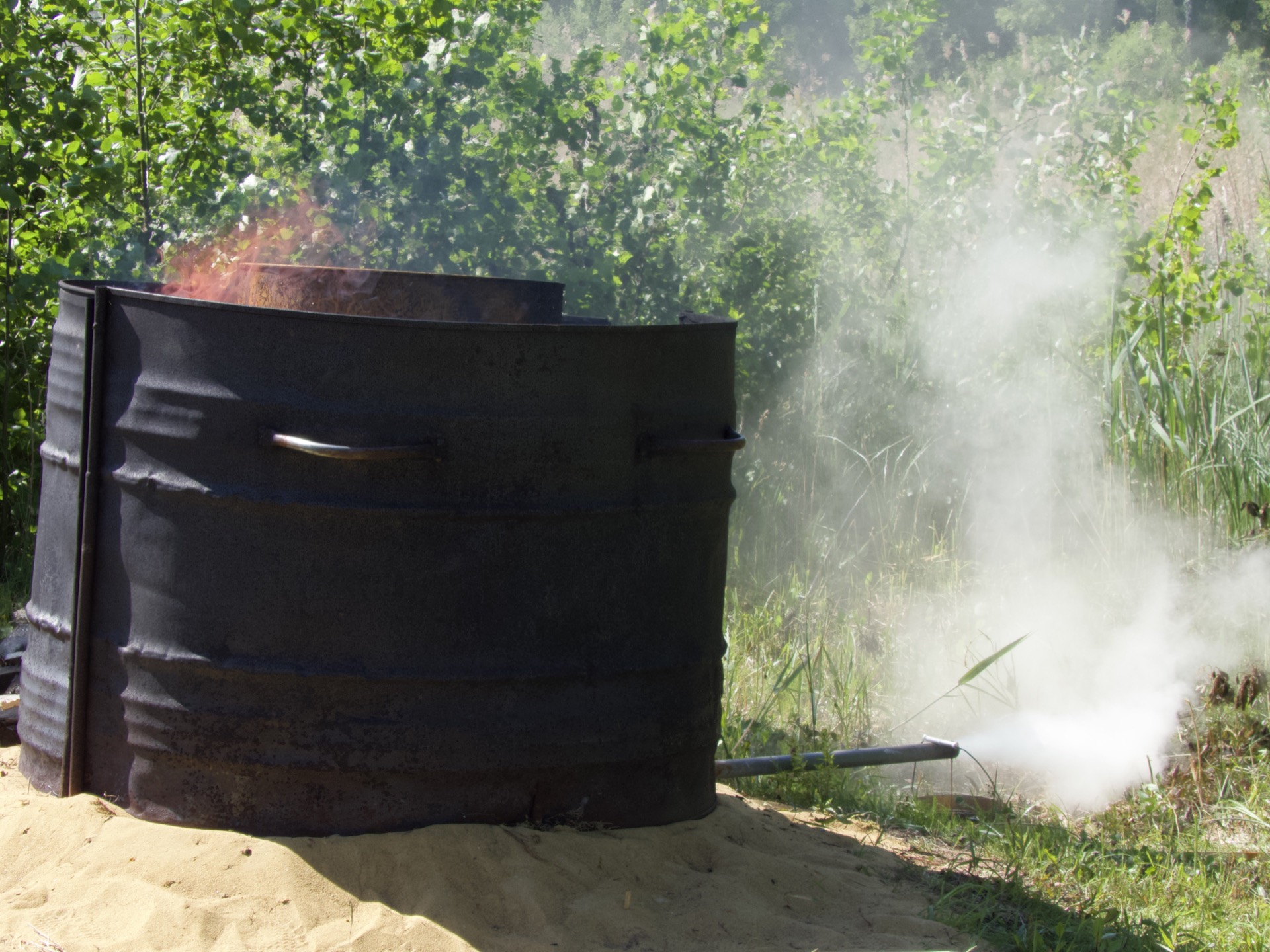 So konnten wir einem Mann beim Erstellen einer Skulptur nur mit Kettensägen zusehen und wie Teer aus Holz gewonnen wird. Das war sehr interessant. Da wird ein großes Fass gefüllt mit Holzscheiten und dann wird aussen Feuer gemacht. Durch die Hitze die entsteht läuft dann der Baumharz über ein Rohr nach außen in einen Eimer. Damit werden Boote oder auch Holzbalken die dem Wetter ausgesetzt sind versiegelt. Die Finnen genießen es auch als Aroma im Likör, Limonade oder in Eis. Sie sagen, wenn Sauna, Wodka oder Teer nicht hilft, ist die Krankheit wohl tödlich.