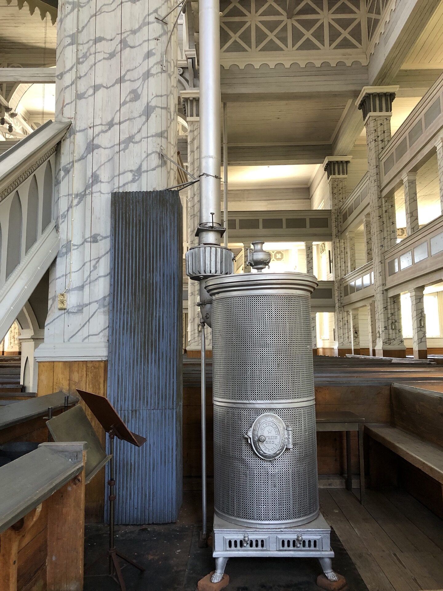 Im Internet steht, dass die Kirche nicht beheizt werden kann und daher nur im Sommer genutzt wird. Wir haben da aber vier metallene Behälter gesehen und wir hätten schwören können, dass es Heizöfen sind. Hat jemand eine andere Idee dazu??