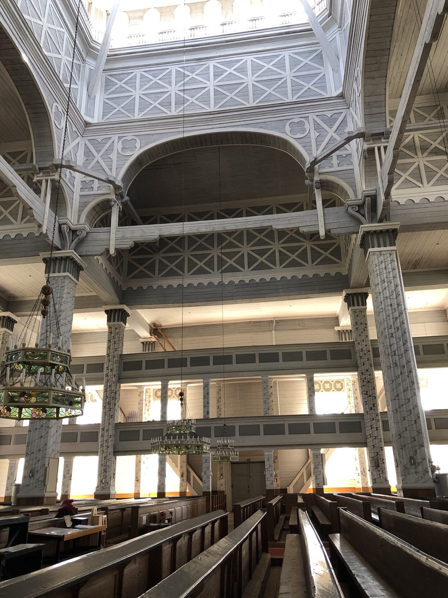 Es gibt 3.400 Sitzplätze und innen ist sie durch Emporen in drei Geschosse geteilt. Ich kann euch sagen, es ist sowas von beeindruckend in dieser Kirche zu stehen!! Bis auf das Altarbild und die Kronleuchter gibt es keinen großen Schnickschnack. Allein die Größe ist das Beeindruckende!