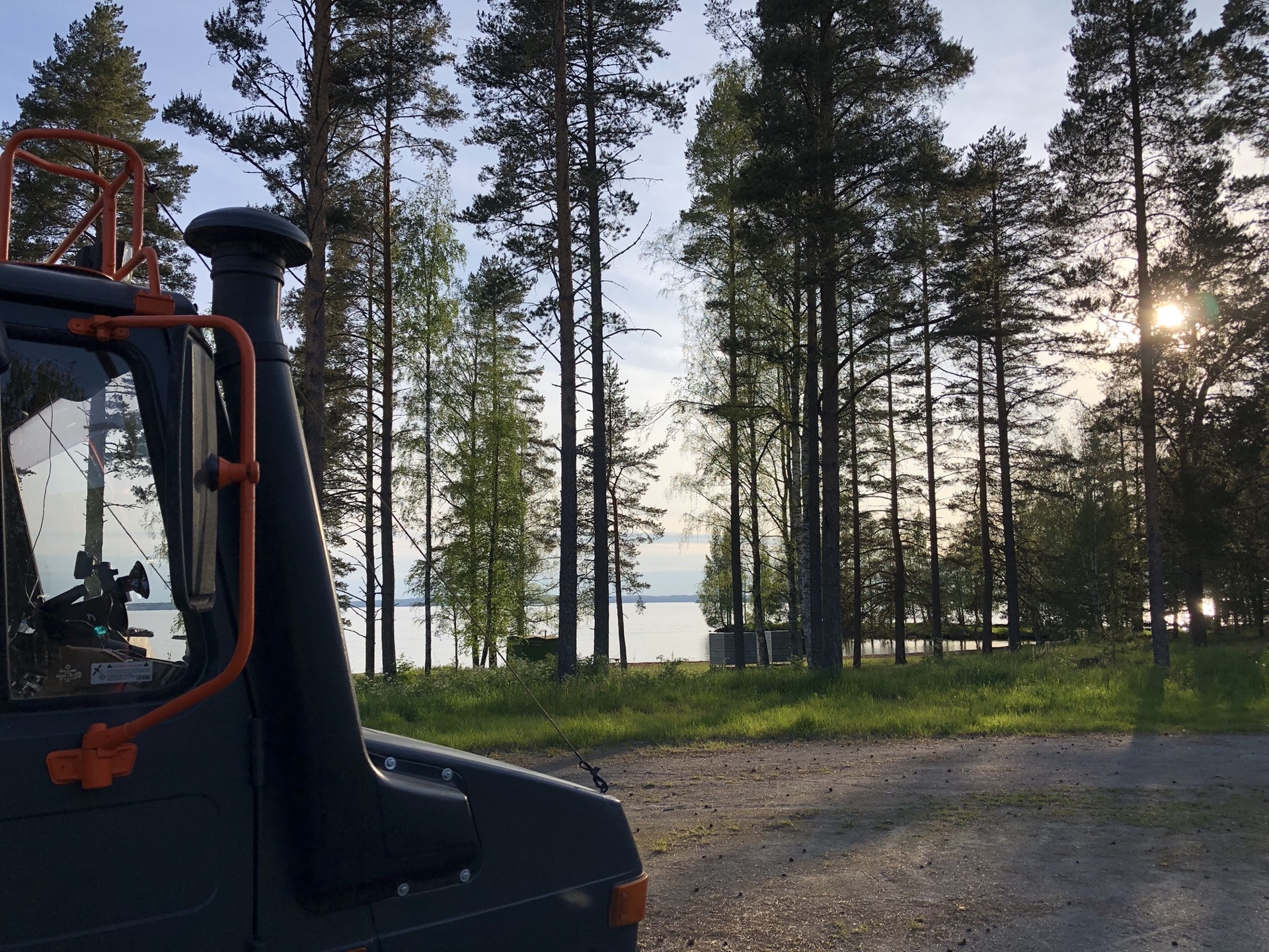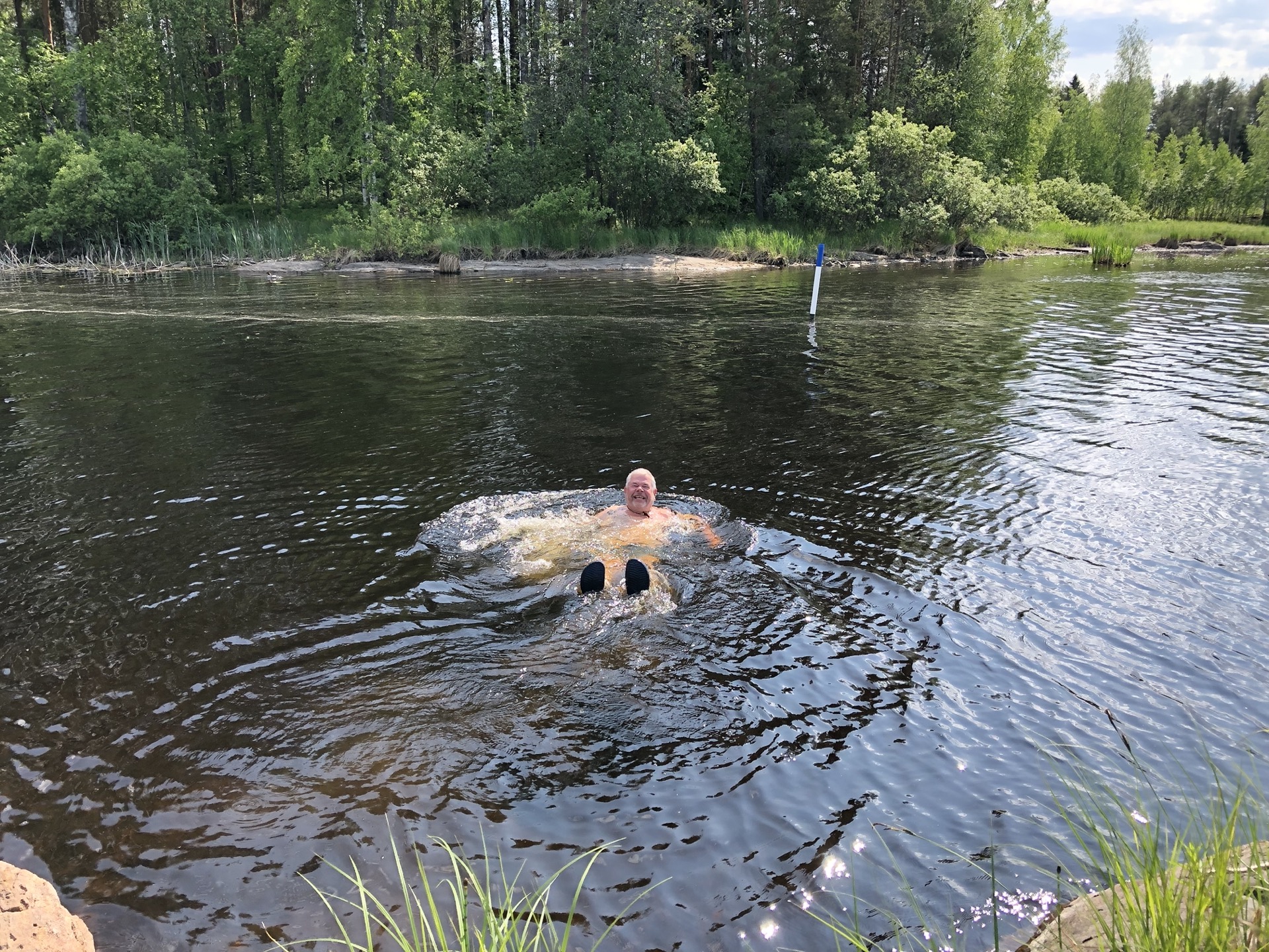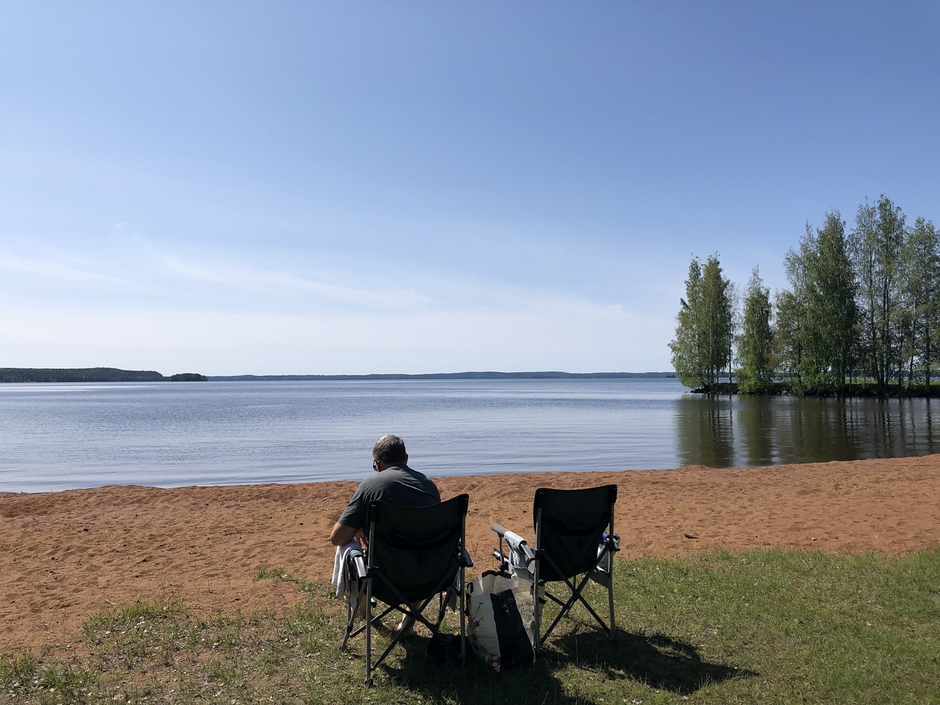 Wir fahren weiter bei Sonnenschein durch schöne Landschaft und finden einen tollen Stellplatz in Enonkoski direkt am Wasser. Siggi geht tatsächlich baden und ich habe das erste mal auf der Reise kurze Hose und T-Shirt an.