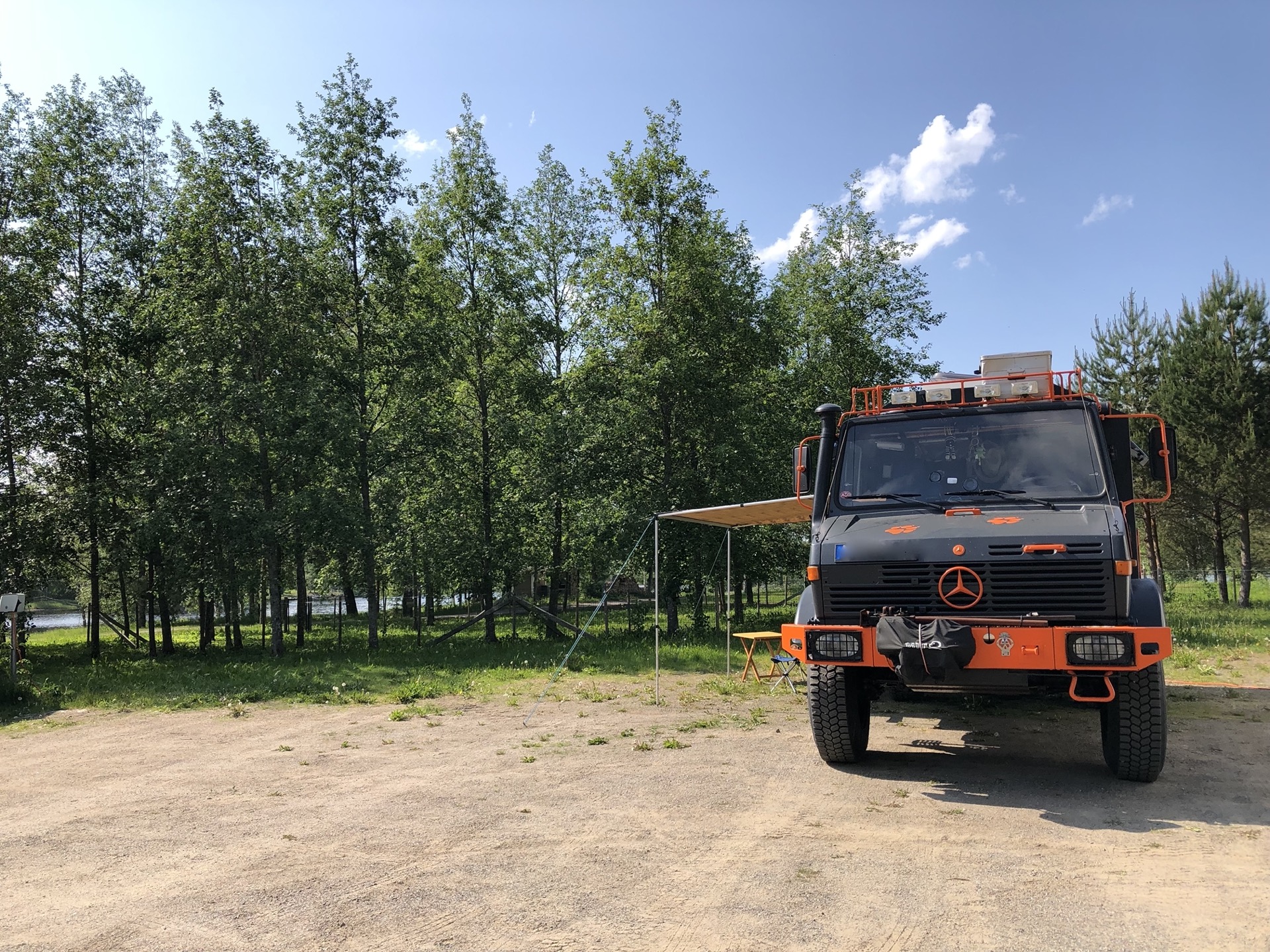 Es gab auch einen kleinen Handwerkermarkt. Dort haben wir Anett und ihren finnischen Mann kennen gelernt. Die beiden haben einige Jahre zusammen in Deutschland gelebt und seit Corona haben sie sich in Finnland niedergelassen. Er stellt Messer her und sie macht Ledereinbände für Gäste-, und Tagebücher, Schlüsselanhänger und Türschilder aus Holz. Die beiden haben uns einige Tipps gegeben, z.B. dass man Mittags für „kleines Geld“ richtig lecker Buffet essen kann, und dass es extra eine Webseite gibt, wo angezeigt wird, ob man Feuer machen darf oder eben nicht.