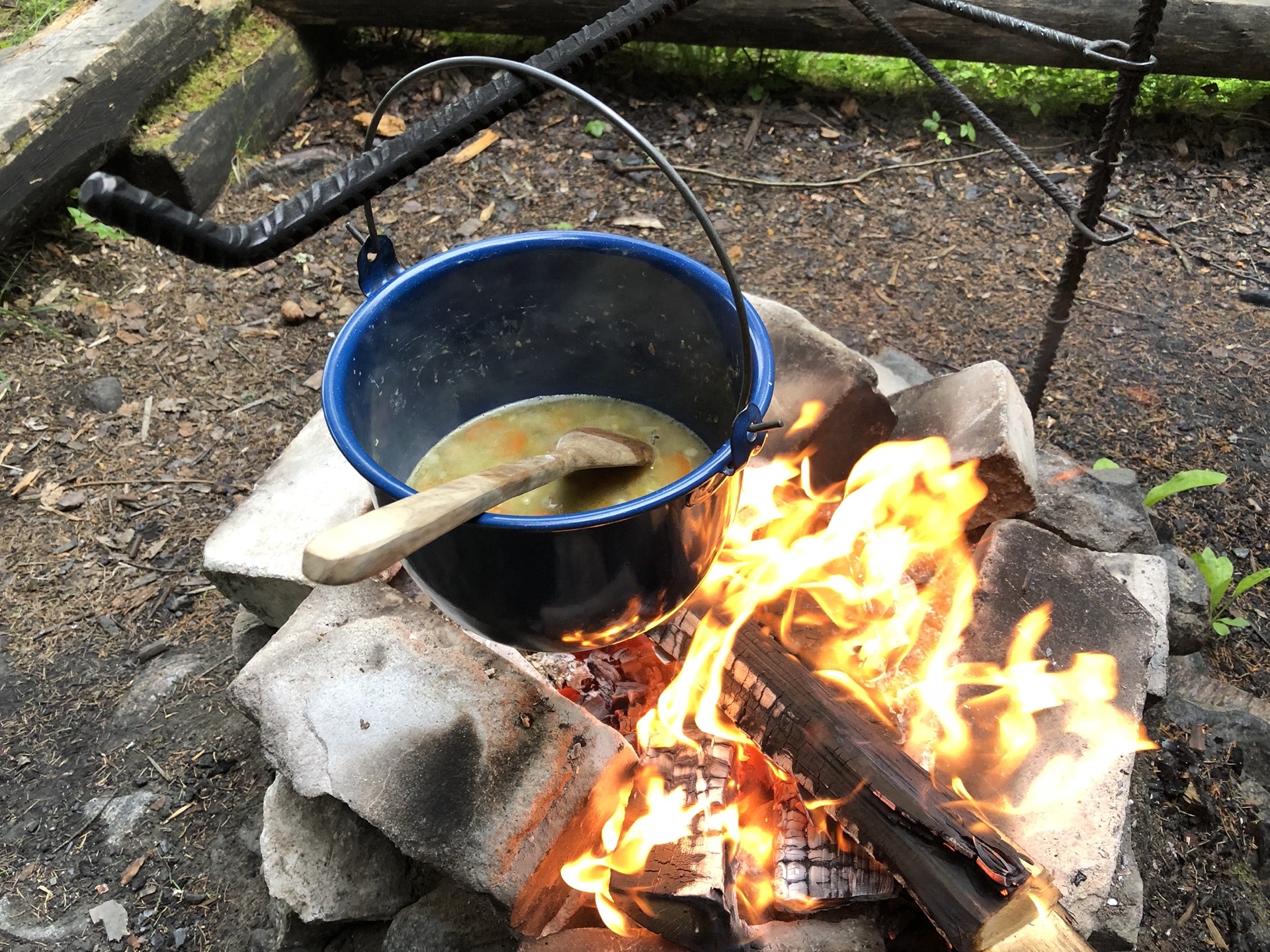 Zum Glück ist der Picknickplatz mit Grillstelle, kleinem Unterstand und jede Menge Feuerholz ausgestattet. So sitzen wir ab Nachmittags am Feuer, machen Kaffeewasser warm und bereiten auch das Abendessen draußen zu. Feuer hat einfach immer wieder was beruhigendes.