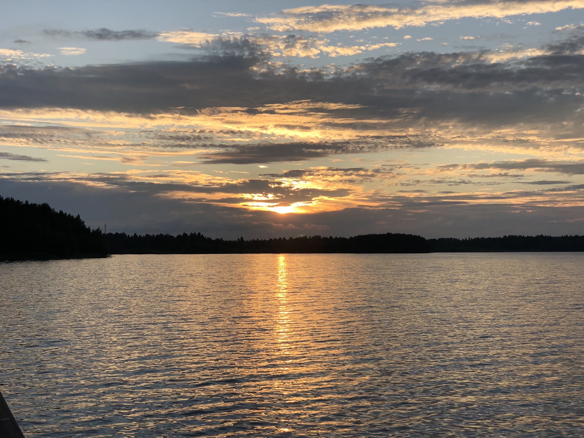 Die Fahrt war mega anstrengend, doch wir schaffen es tatsächlich bis nach Töre auf ein kleines Camp am nörtlichsten Punkt der Ostsee. Es ist schön warm, wir können recht lange draußen sitzen und haben einen super schönen Sonnenuntergang. Das Beste aber ist, dass es keine Mücken gibt!