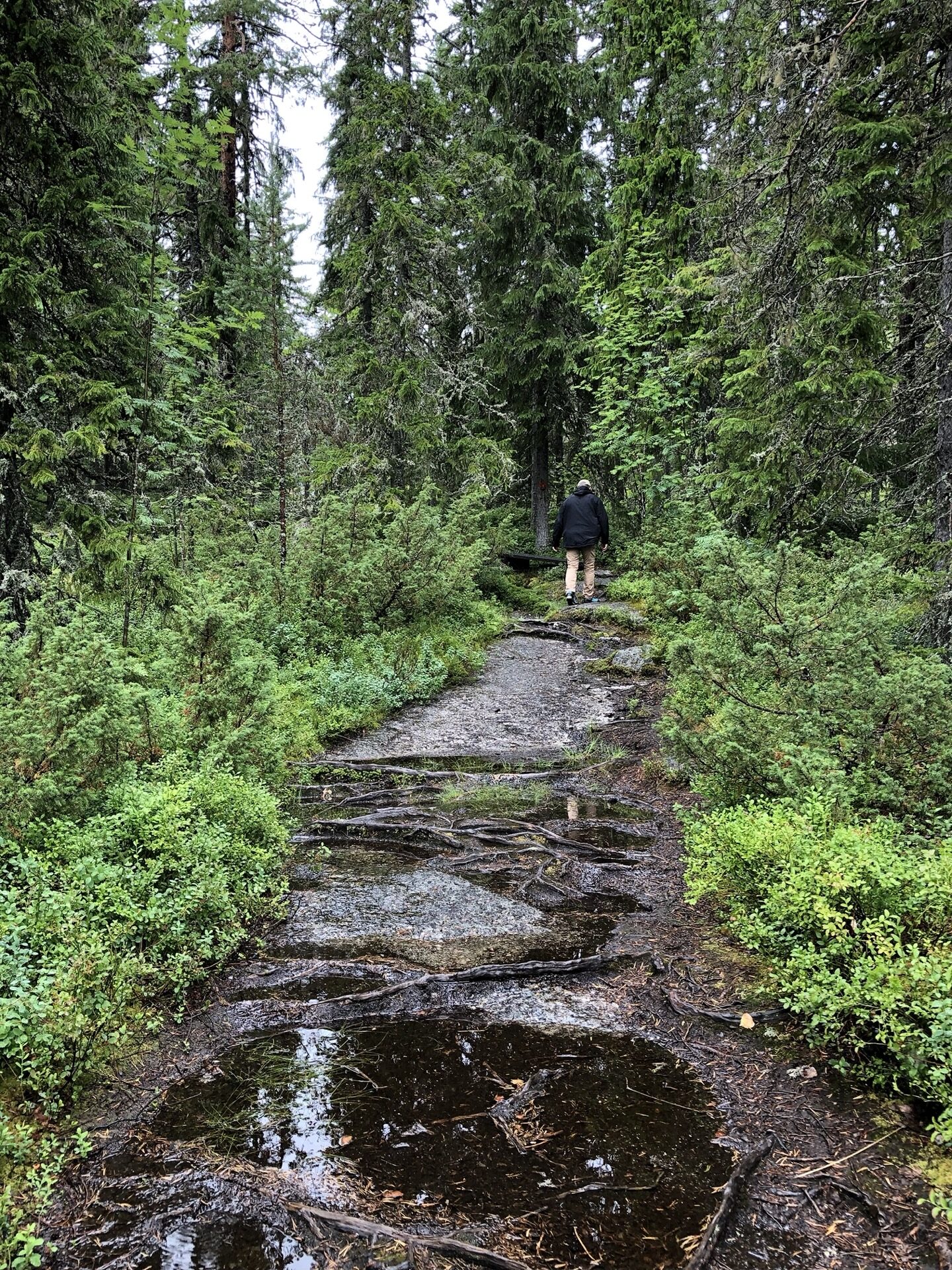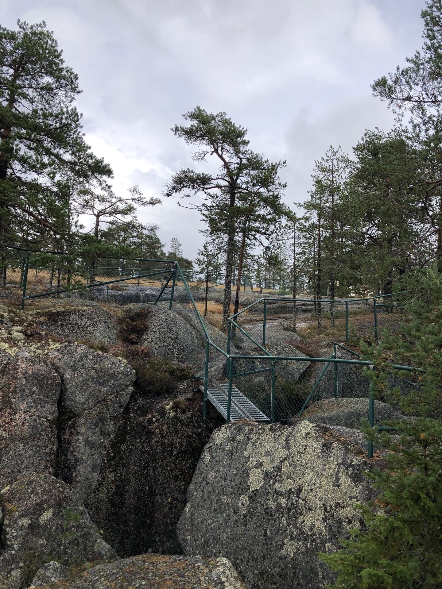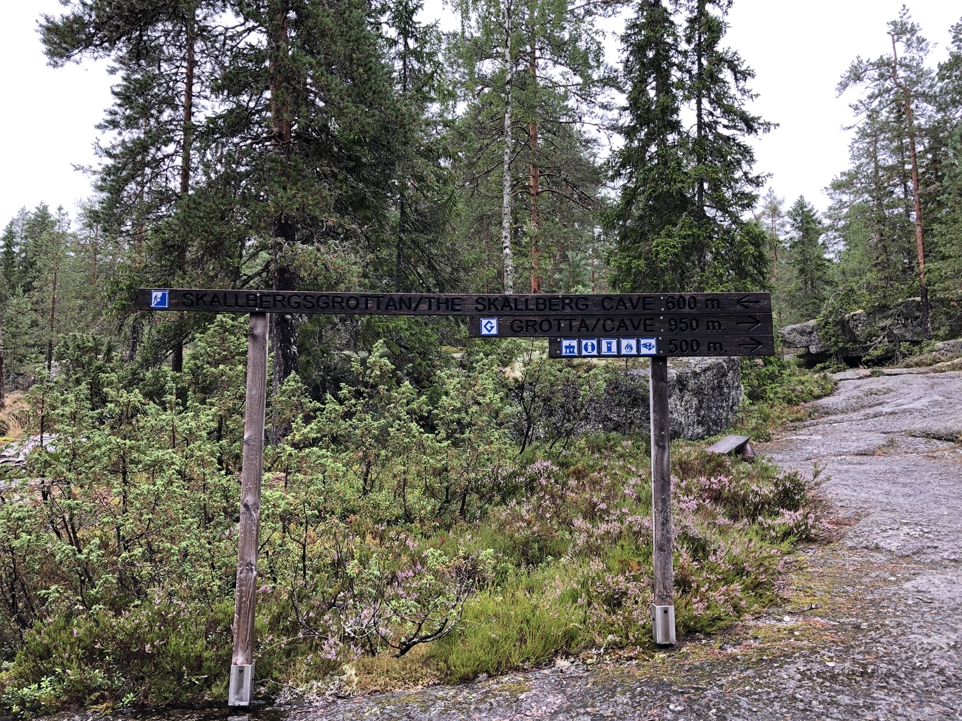 Danach wollen wir uns etwas abseits der Küste die Skallbergsgrotten anschauen. Das war ein Tipp von Kristina, die wir am Piteälven kennengelernt haben. Die Strecke dorthin ist schon recht schön, außer dass es regnet, aber das hört auch wieder auf!