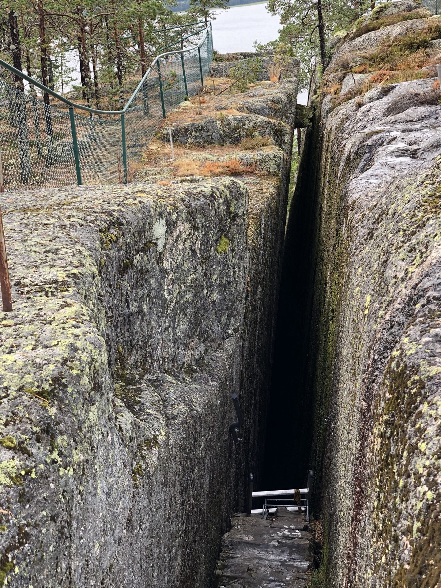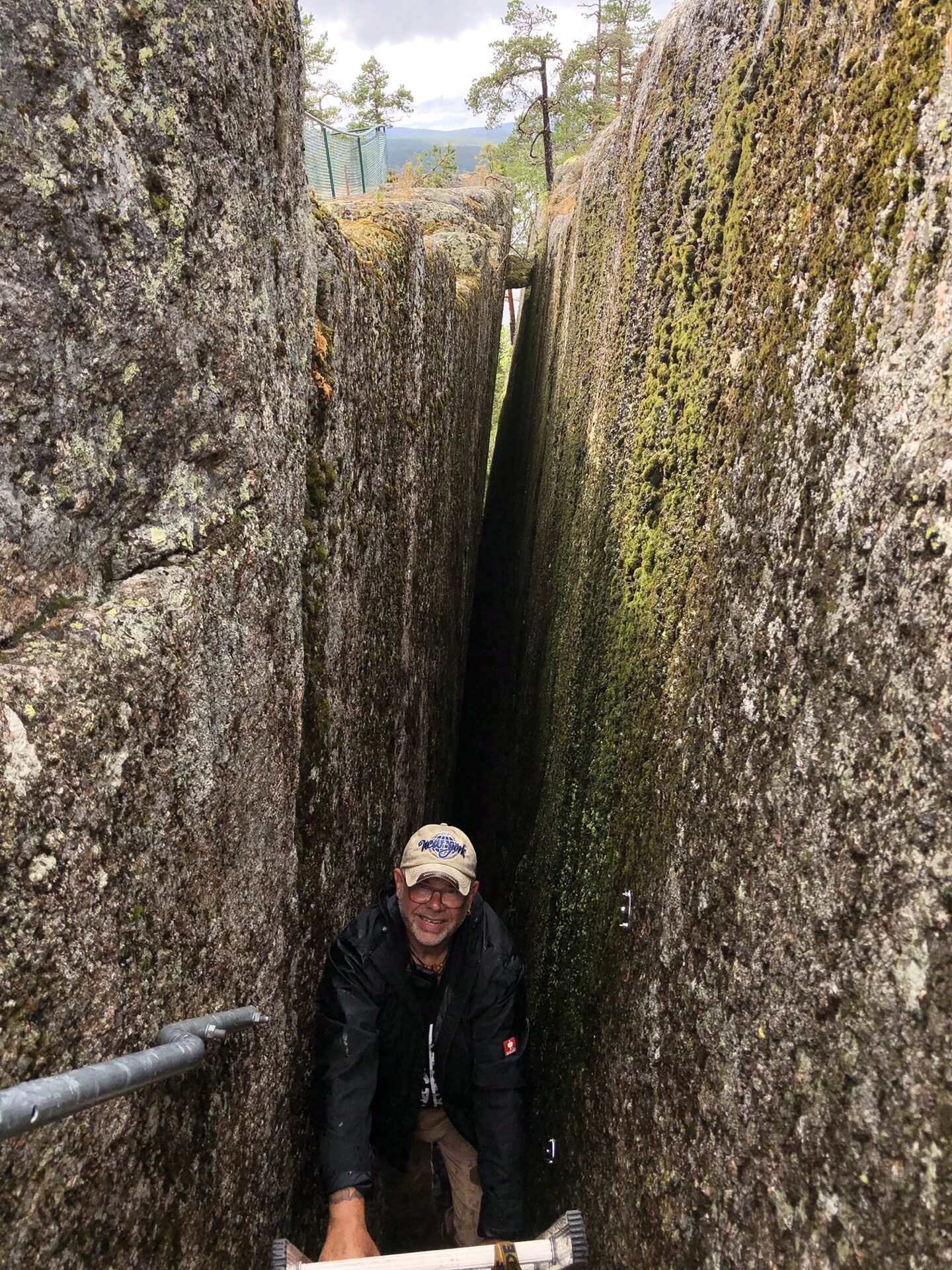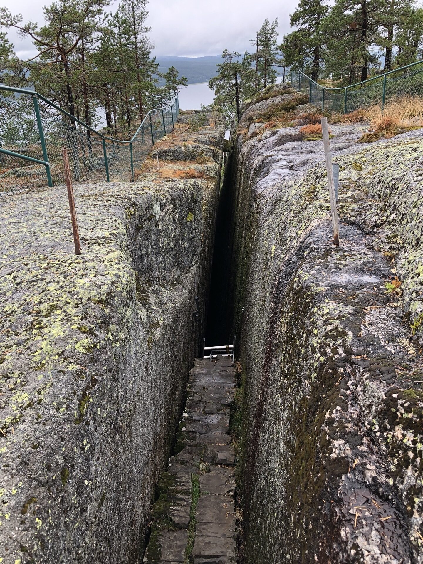 Danach wollen wir uns etwas abseits der Küste die Skallbergsgrotten anschauen. Das war ein Tipp von Kristina, die wir am Piteälven kennengelernt haben. Die Strecke dorthin ist schon recht schön, außer dass es regnet, aber das hört auch wieder auf!