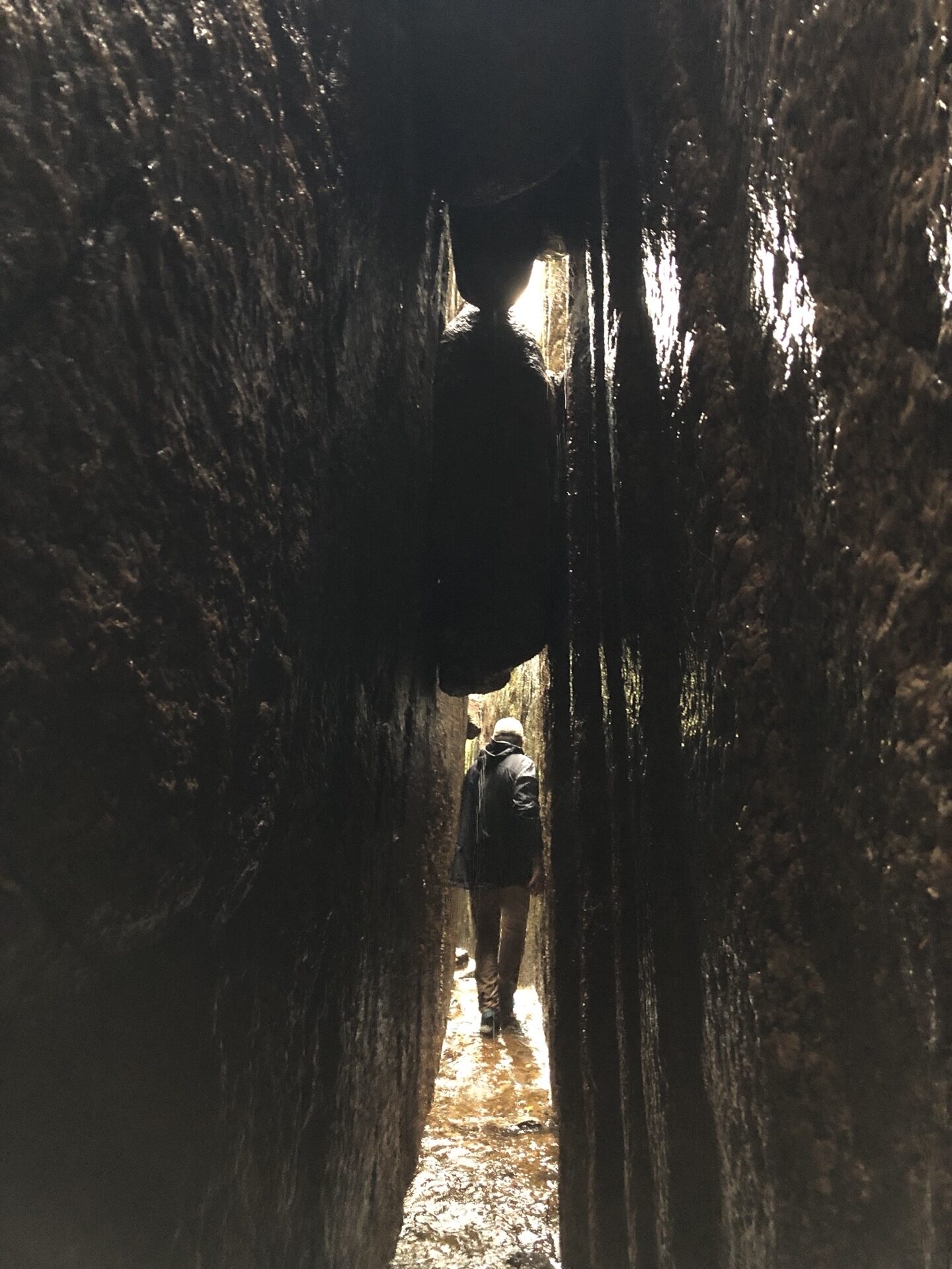Unten angekommen haben wir, wie von mir befürchtet, teilweise bis zu 50cm tiefes Wasser. Toll! Siggi quetscht sich an mir vorbei und geht vorneweg. Wirklich weit kommen wir aber nicht, denn die Felsspalte wird enger und das Wasser immer mehr. Nach dem wir ein paar mehr oder weniger gute Fotos gemacht haben, geht es wieder über die Leiter nach oben.