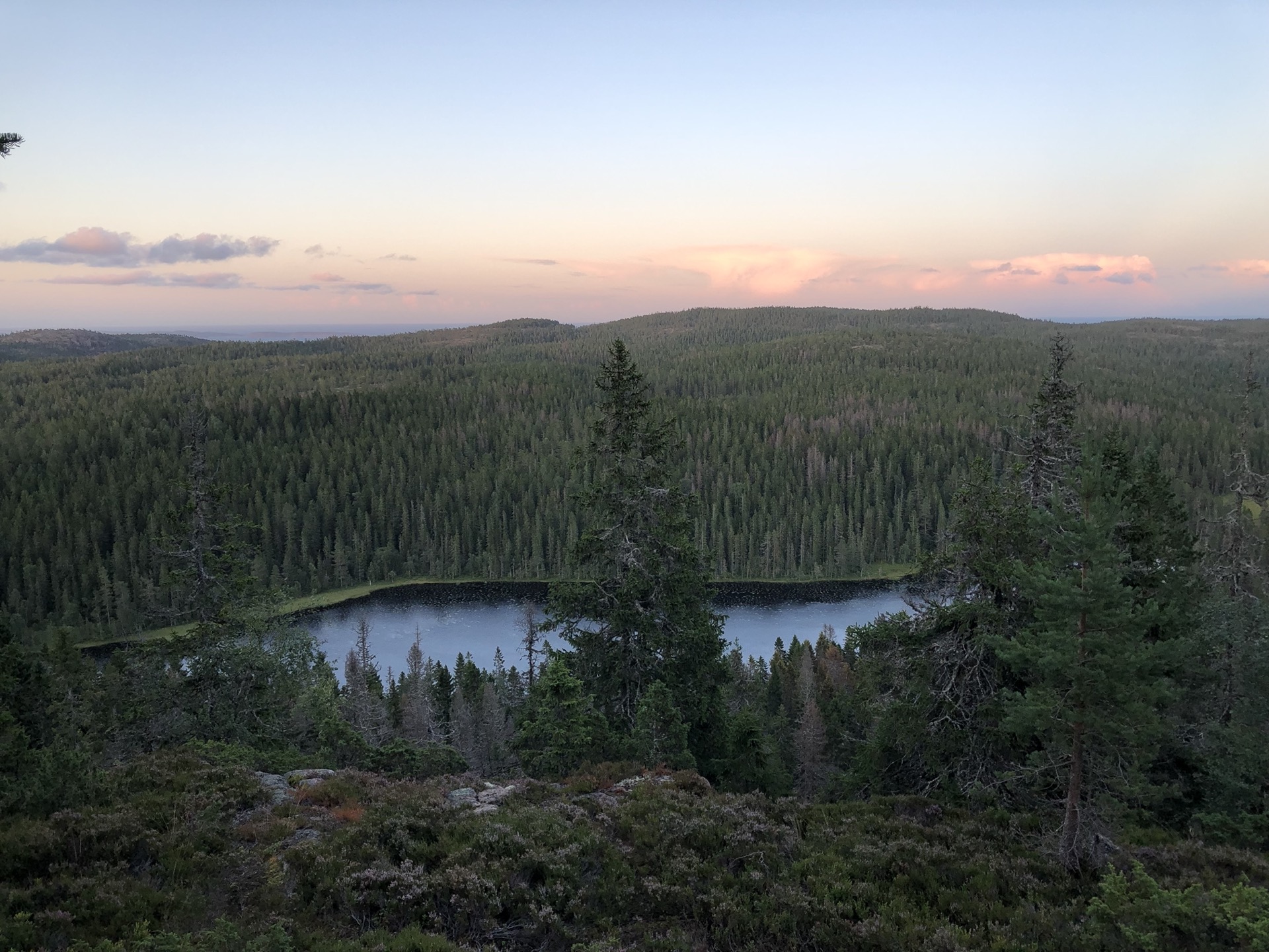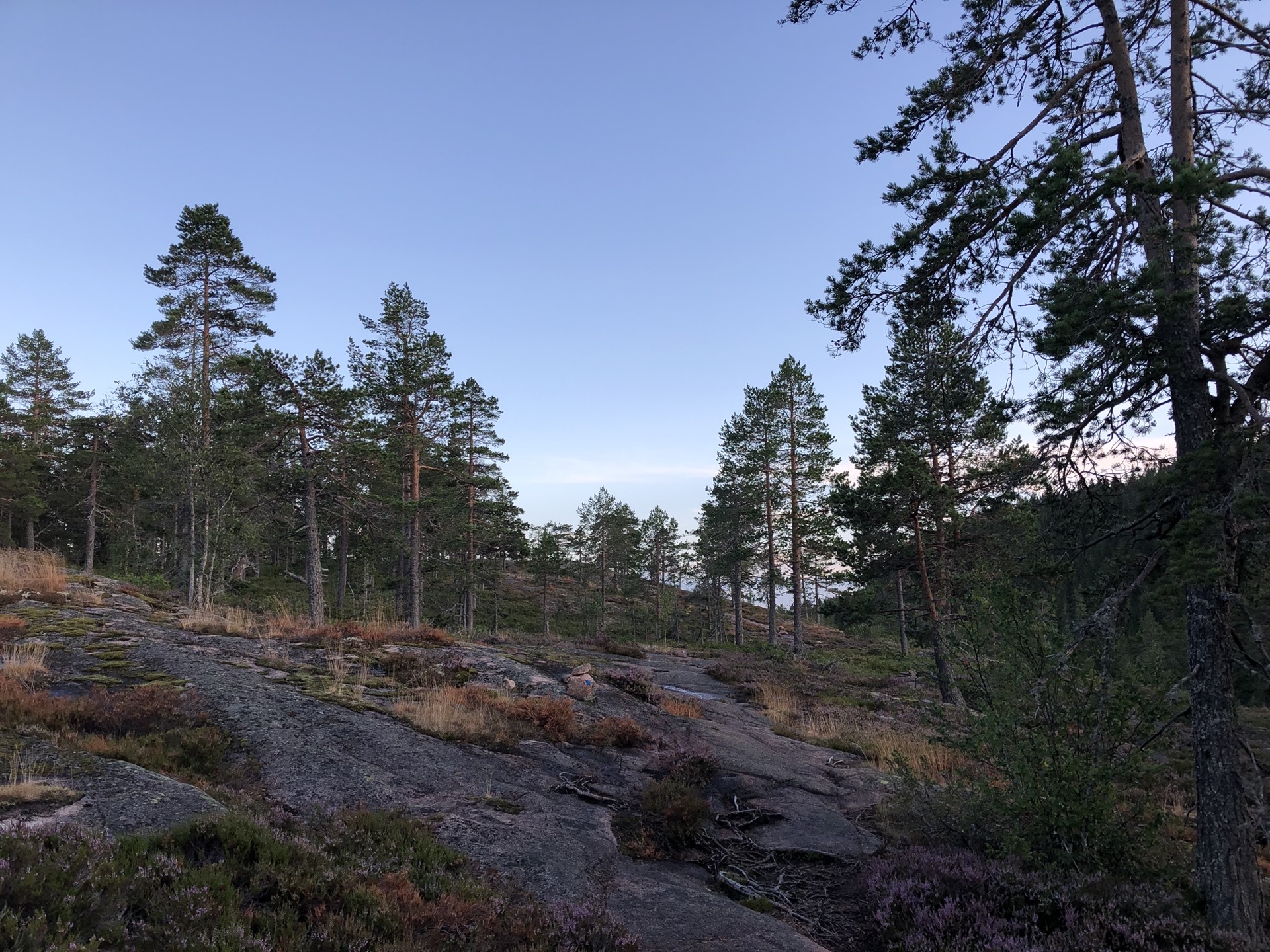 Der Weg führt durch den Wald auf eine Anhöhe mit Aussicht und ist im letzten Licht des Tages ein schöner Abschluss.