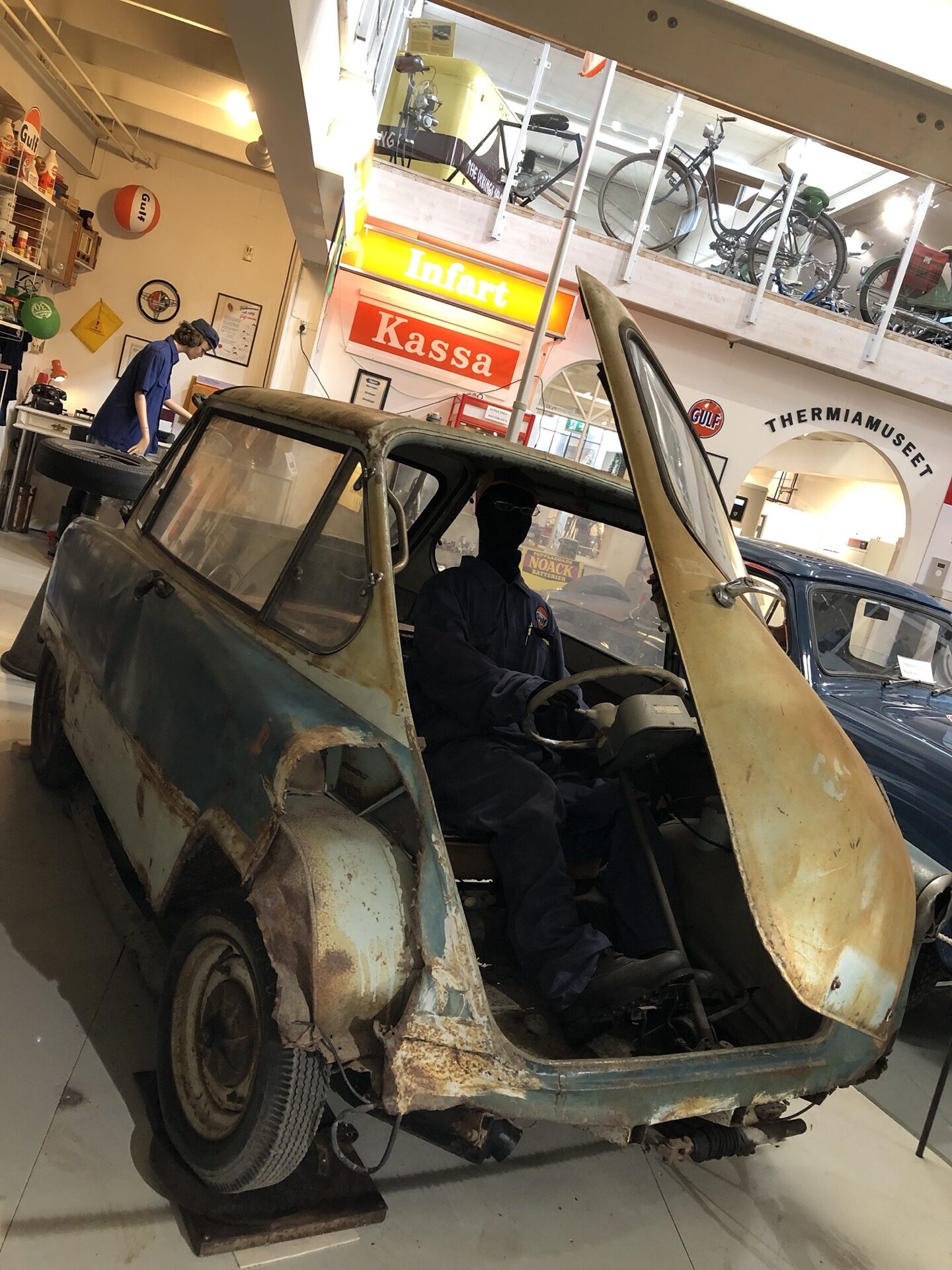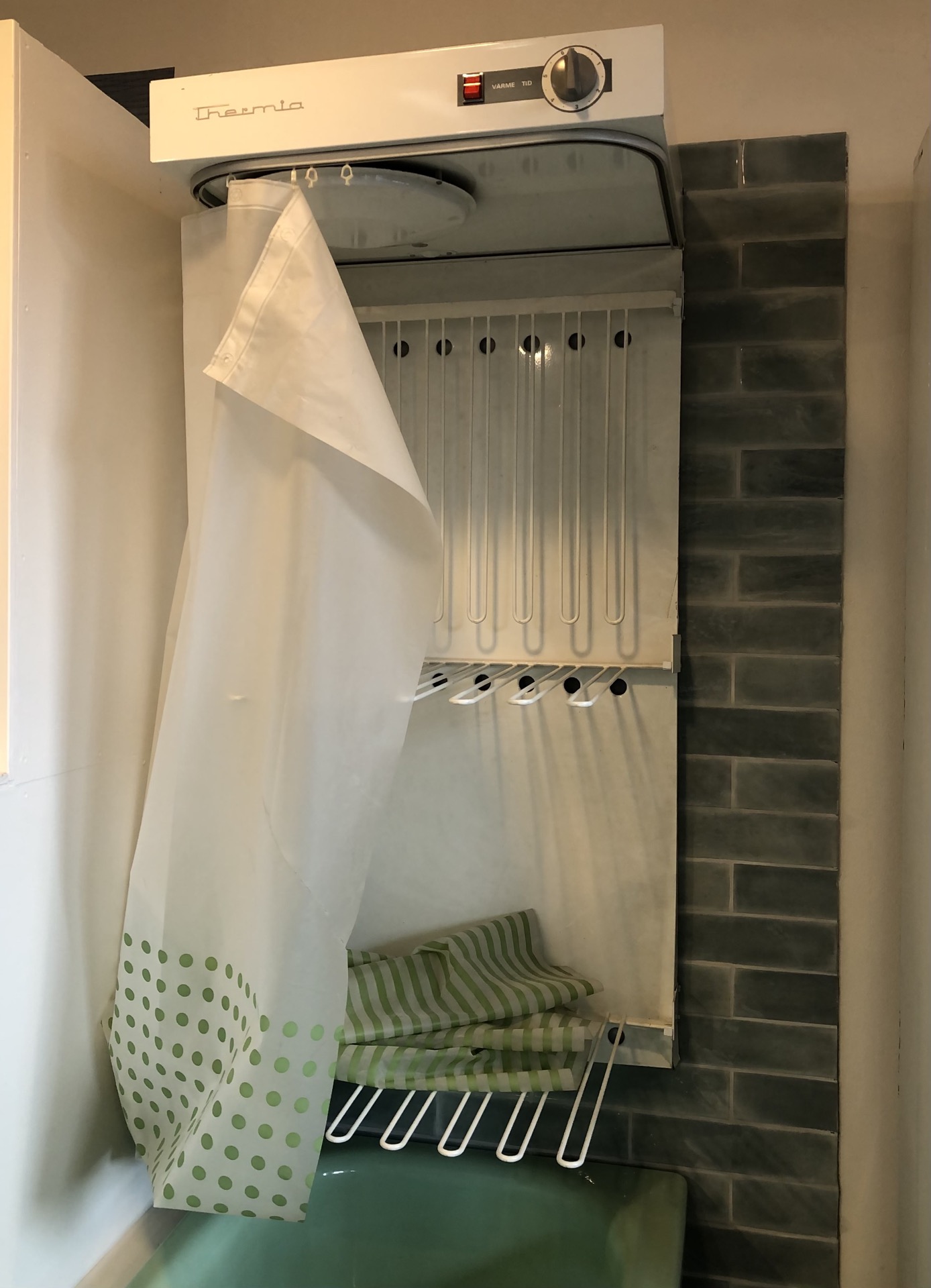 Wir haben aber nicht nur Autos und Motorräder gesehen, nein, es gab auch einen ziemlich interessanten Wäschetrockner in der Ausstellung. Den konnte man über der Badewanne montieren und die Wäsche im Winter trocknen.