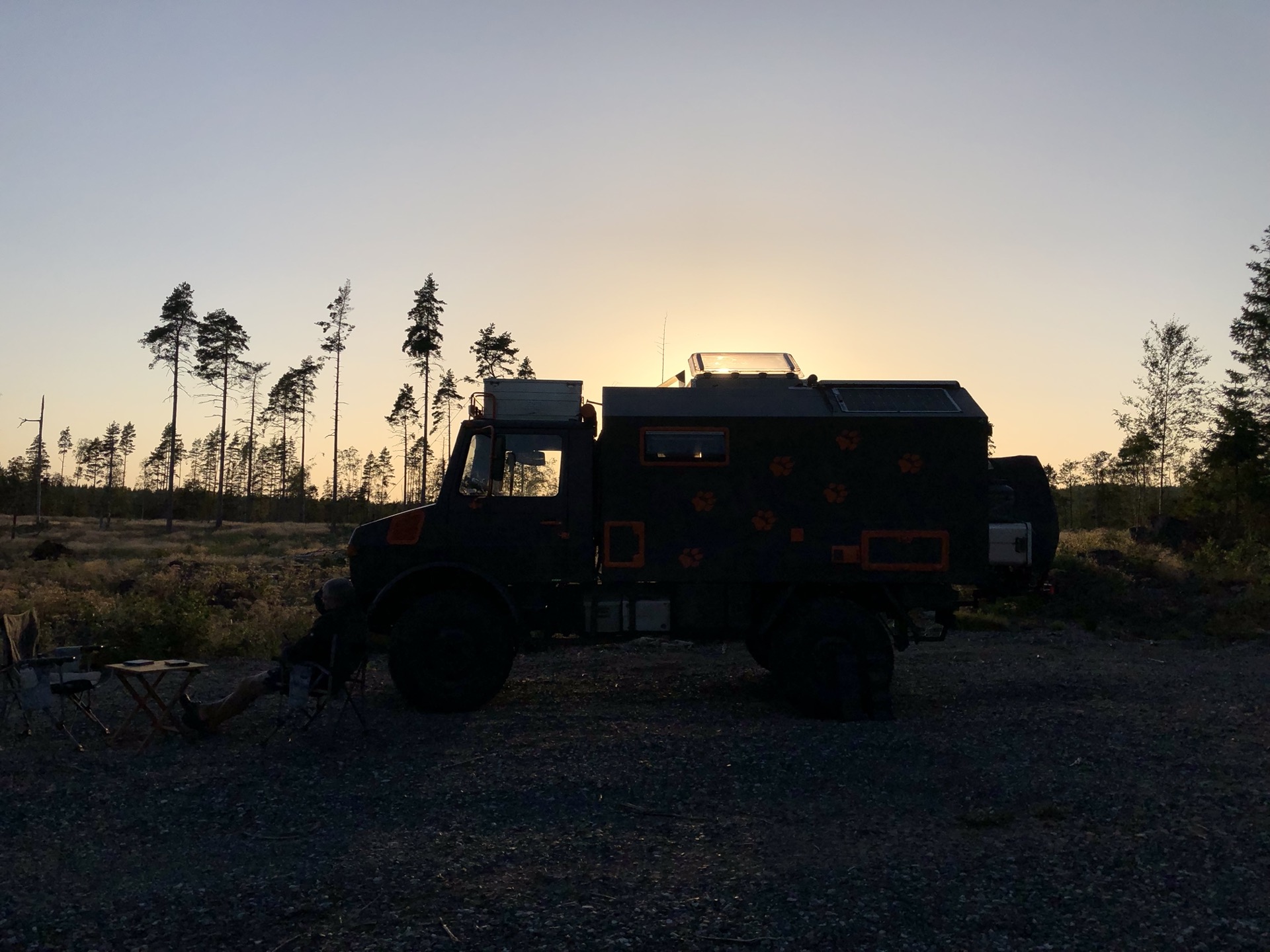 Den nächsten Übernachtungsplatz finden wir in einem Wald, auch hier gibt es wieder einen See und wir sind ganz für uns. Sitzen bis nach Sonnenuntergang draußen und geniessen die Stille.